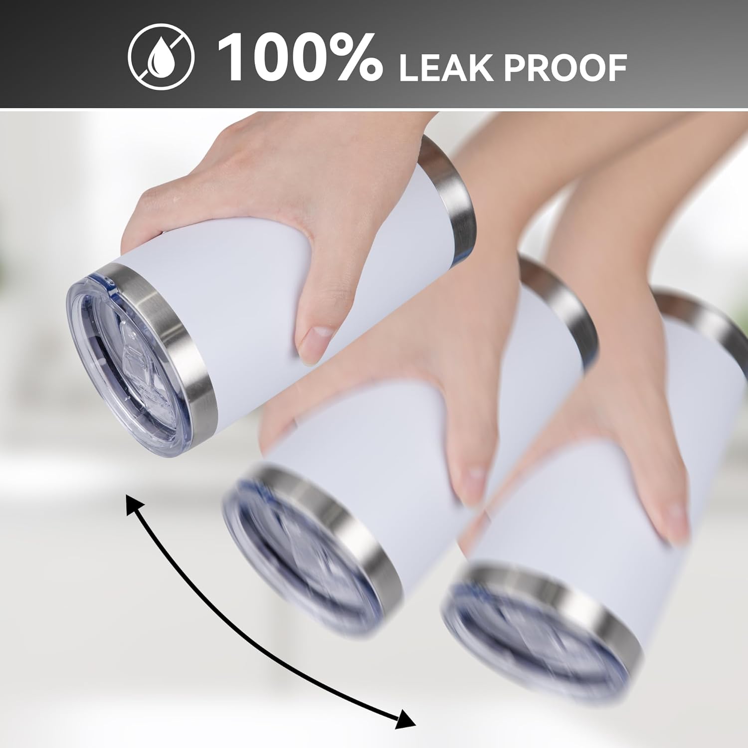 - 18/8 Stainless Steel Tumblers: Our tumbler cups are made of food-grade stainless steel, which makes them rust-resistant and unbreakable for heavy use all year round. The press-on lid is made of BPA-free plastic, which is safe and prevents leaks. These non-toxic tumblers provide a healthy drinking experience.