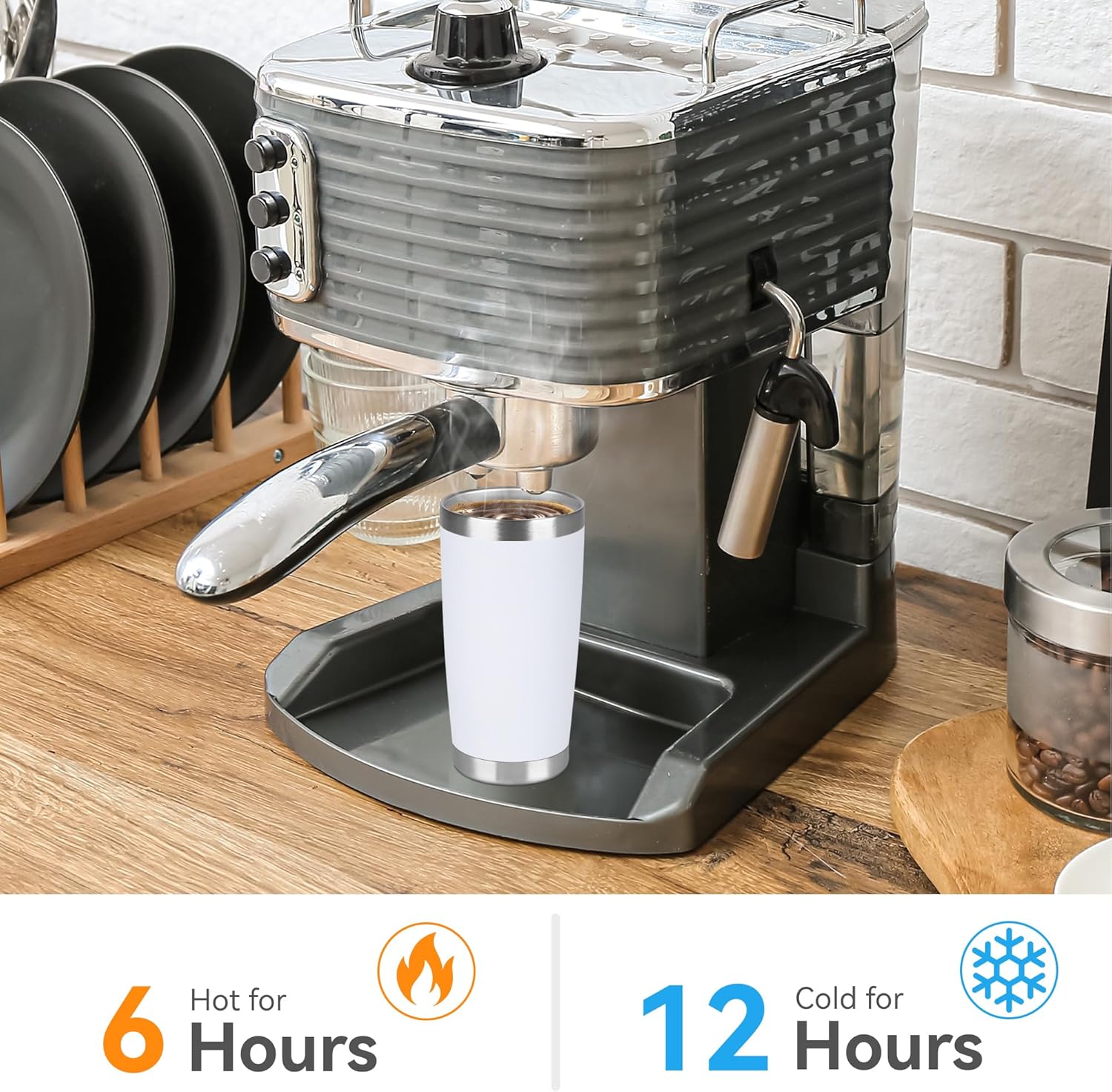 20 oz Tumbler Stainless Steel Tumblers Bulk with Lid Double Wall Insulated Coffee Tumbler Cups for Hot & Cold Drinks Powder Coated Travel Coffee Tumbler Mug Metal (White, 6 pack)