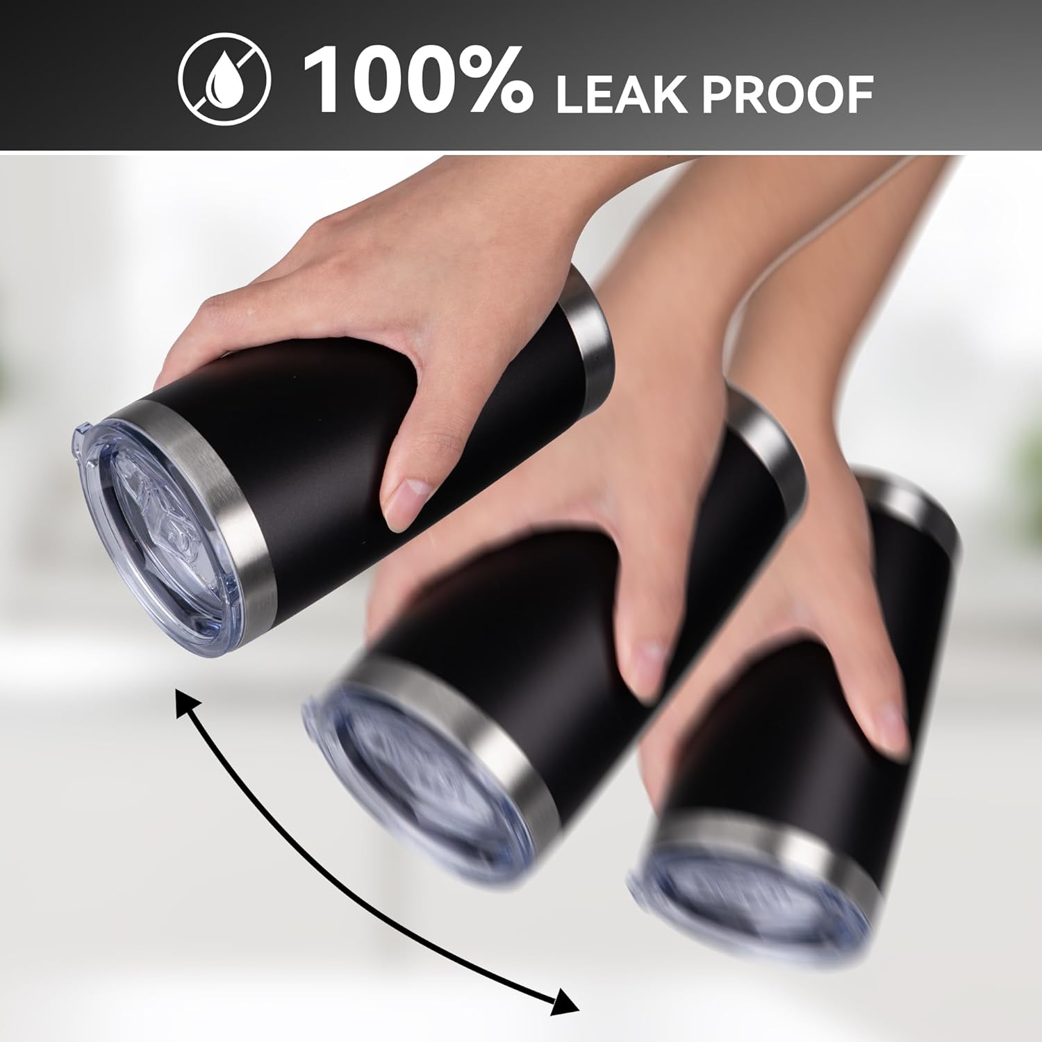 20 oz Tumbler Stainless Steel Tumblers Bulk with Lid Double Wall Insulated Coffee Tumbler Cups for Hot & Cold Drinks Powder Coated Travel Coffee Tumbler Mug Metal (Black, 6 pack)