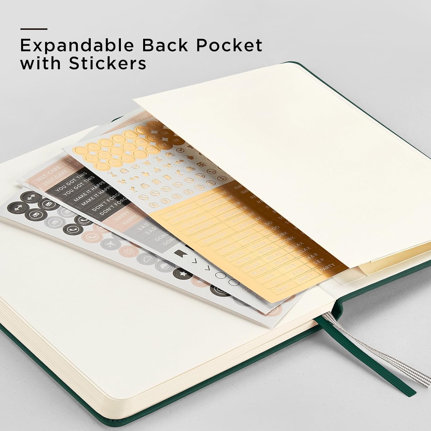 - 180° LAY-FLAT DESIGN: The lay-flat design allows for easy writing and ensures that you can utilize every page efficiently. Journaling, note-taking and planning has never been easier! 2 Bookmarks to help you find important content faster