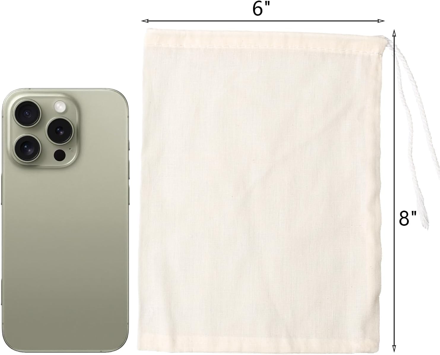 Eketirry Spice Bags, 10pcs Reusable Empty Tea Bags, Muslin Strainer Bags, Soup Bags for Cooking, Natural Cotton Fine Mesh Cheesecloth Bags for Cold Brew Coffee(6 x8Inch)