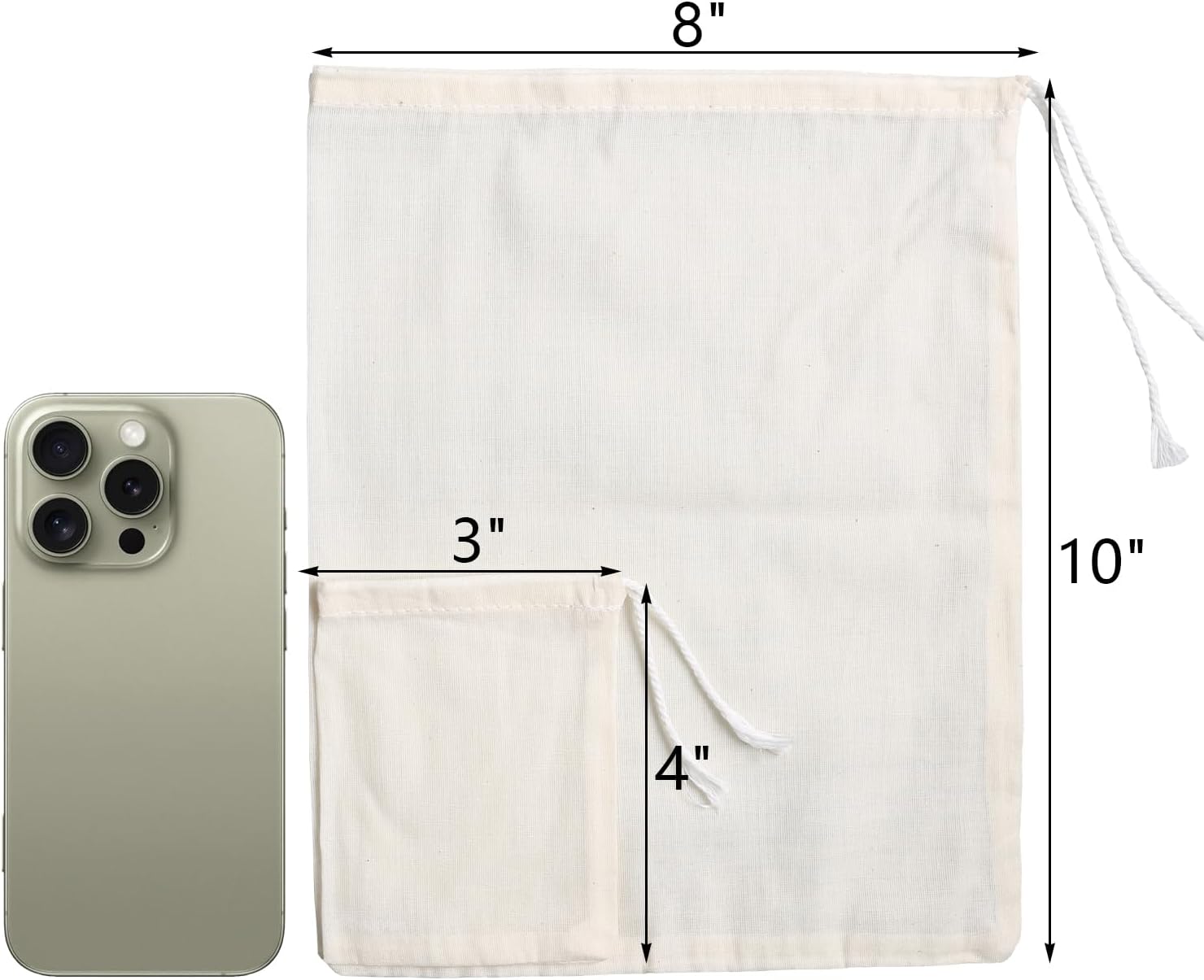 Eketirry Spice Bags, 20pcs Reusable Empty Tea Bags, Muslin Strainer Bags, Soup Bags for Cooking, Natural Cotton Fine Mesh Cheesecloth Bags for Cold Brew Coffee(3 x4" &8 x10")