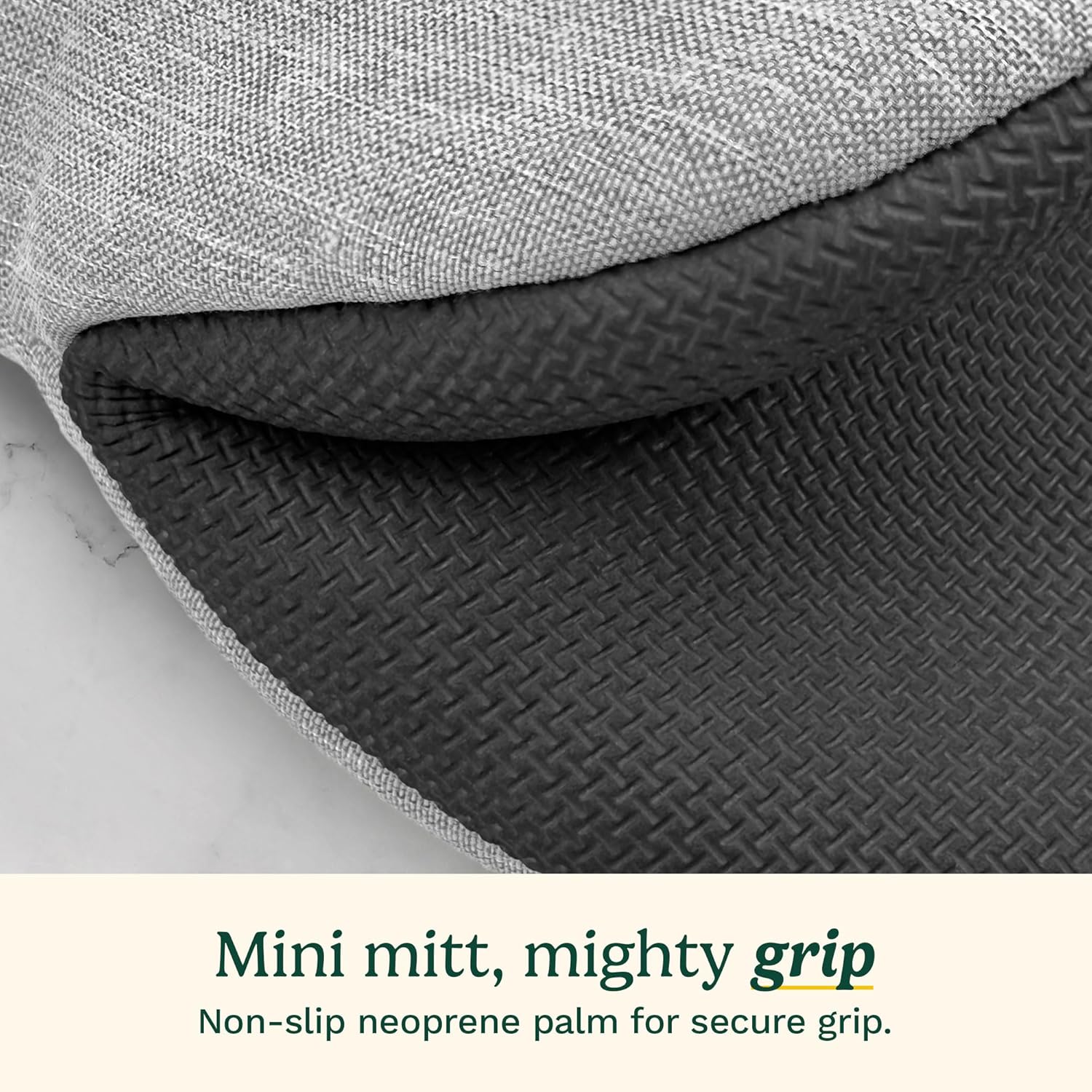 Cuisinart Mini Oven Mitts – 5.5” x 7” Heat-Resistant Kitchen Mitts for Oven with Non-Slip Neoprene Palm, Cotton Filling, and Fabric Loop – Durable Oven Mitt Set for Cooking & Baking (Light Gray)