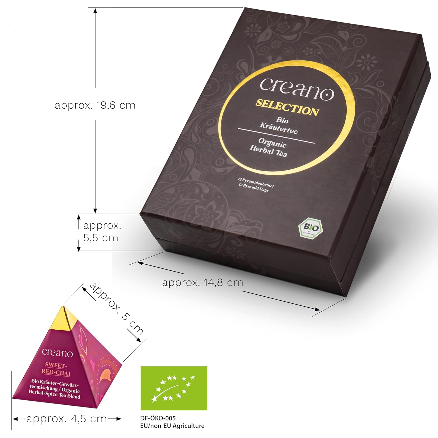 - Creano Organic Herbal-Fruit-Spice Tea Mix Gift Set ‘Organic Herbal Tea’ is a unique blend of the different organic tea varieties: Fruity-Chamomile, Hot-Ginger, Turmeric-Chai, Rooibos-Mango, Sweet-Red-Chai, Evening-Tea, Sweet-Mint, Gentle-Mood and Wellness-Tea