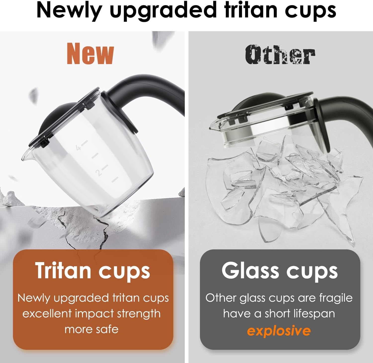 - Durable Tritan Cup: Compared with ordinary glass cups, we come with high-quality, BPA-free Tritan cups, which are shatterproof, safe, and lightweight to maintain the pure taste of coffee in daily use. Plus, the easy-pour Tritan cup has clear graduation markings to deliver the perfect amount every time