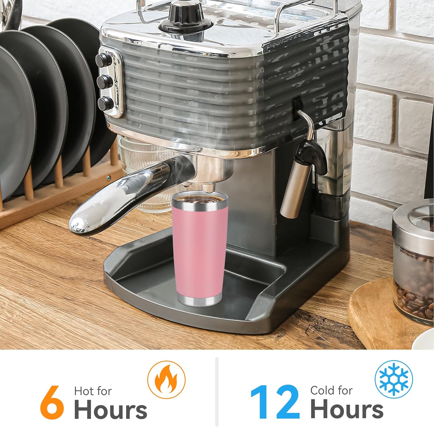 20 oz Tumbler Stainless Steel Tumblers Bulk with Lid Double Wall Insulated Coffee Tumbler Cups for Hot & Cold Drinks Powder Coated Travel Coffee Tumbler Mug Metal (Rose Pink, 12 pack)