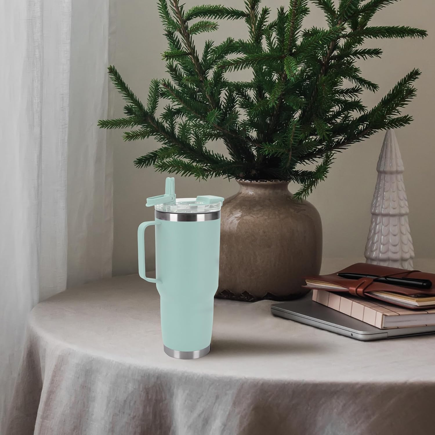 - Tumbler with handle:The welded handle provides a firm grip on your drink. It's large enough for anyone to hold easily, allowing you to carry the tumbler around and take a sip with one hand.