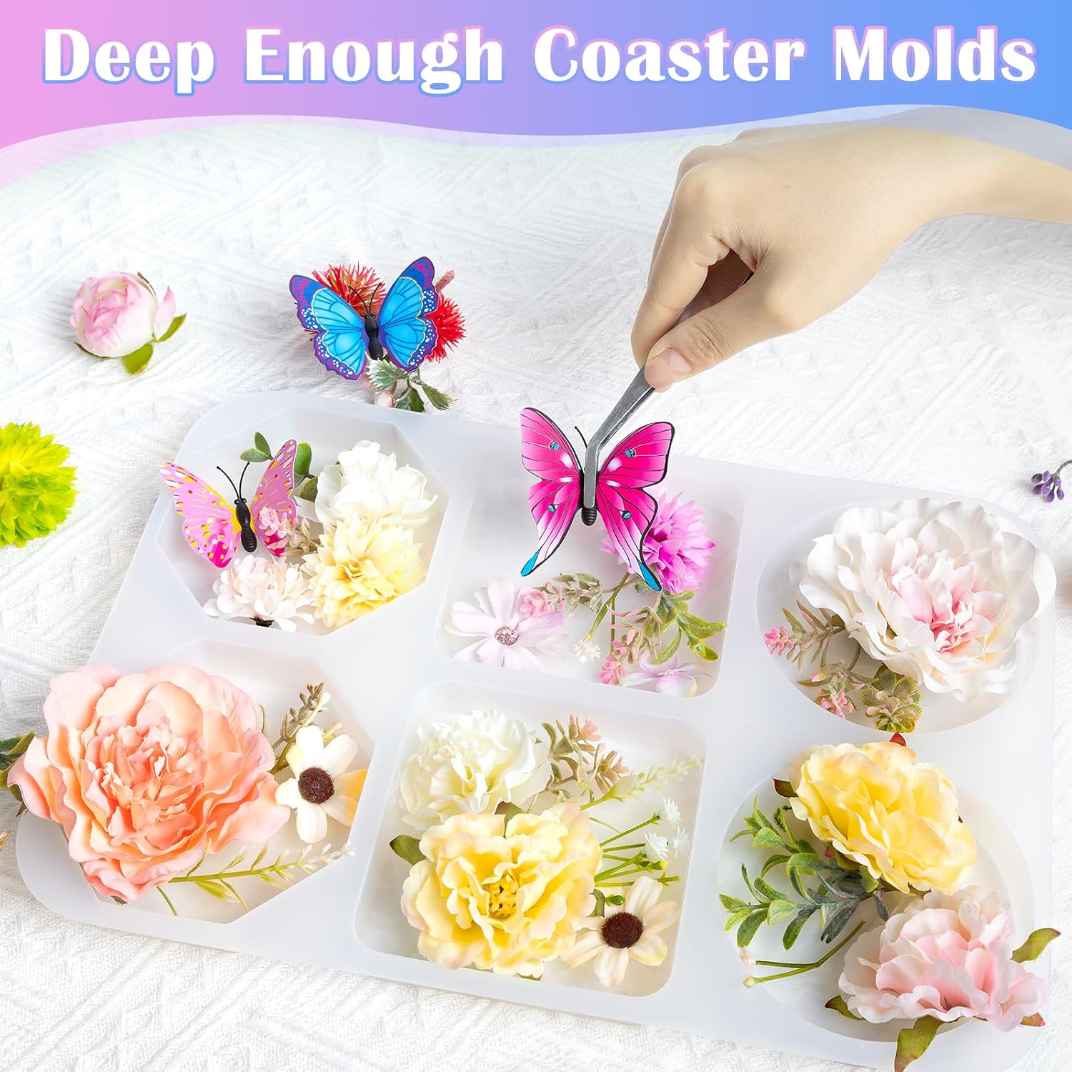 - 【Coaster Molds for Epoxy Resin】YOILES geode coaster resin molds kit set include 2pcs octagon coaster molds, 2pcs square coaster molds and 2pcs round coaster molds.The coaster resin silicone molds have unique geode shapes and edge designs, which allows you to create perfect geode agate resin art crafts.