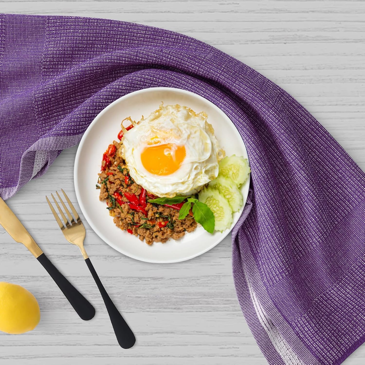 Homaxy Premium Kitchen Towels(18”x 28”, 6 Pack), Large Cotton Kitchen Hand Towels, Flat and Terry Dish Towels, 380 GSM Highly Absorbent Tea Towel Set with Hanging Loop, Purple