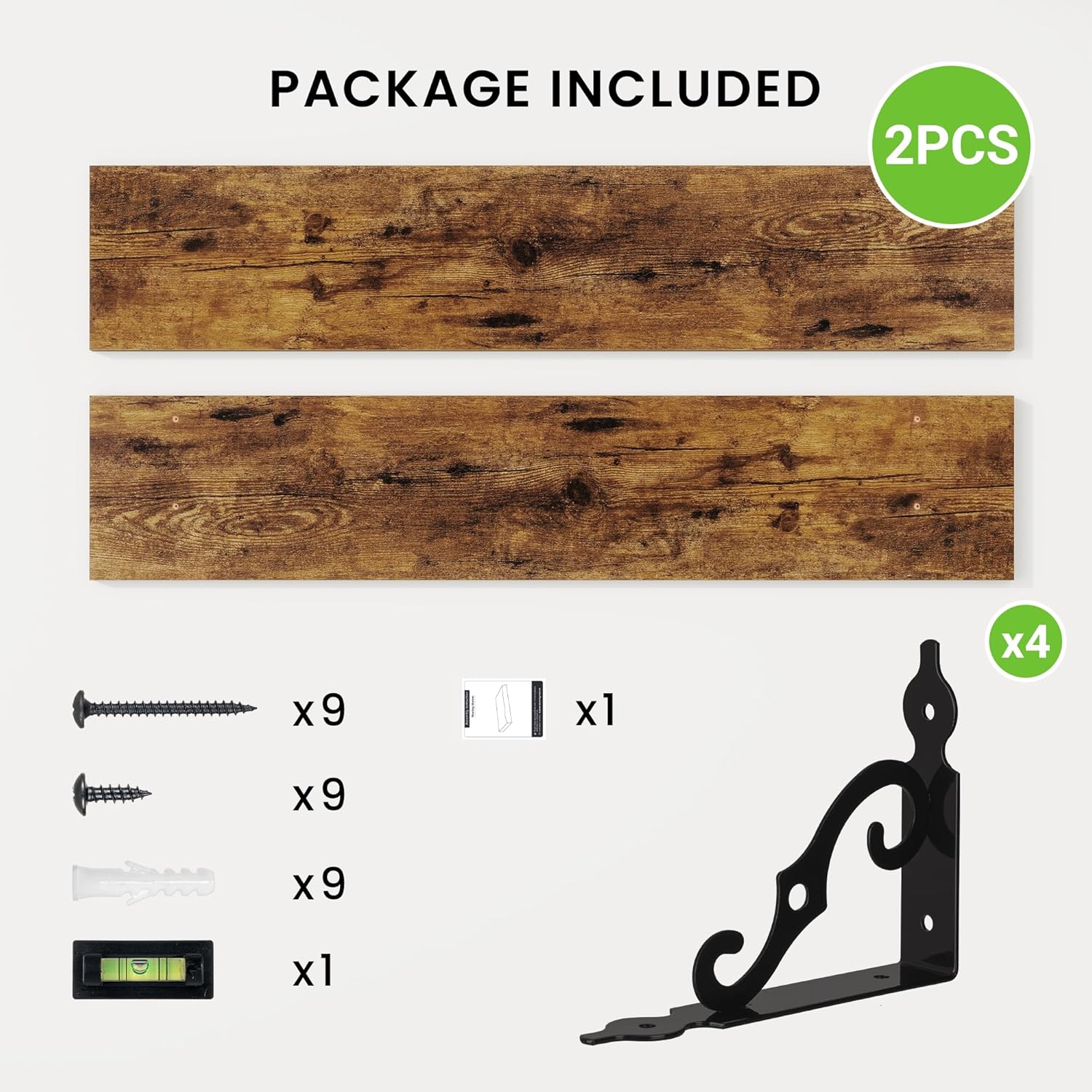 - Perfect Home Decor: This wood shelf fits rustic style, or vintage style home decor, rustic wood grain and exquisite S-shaped brackets will make your home full of modern and elegant romance. Our floating shelf makes full use of the wall, and let your room and bathroom look so cute