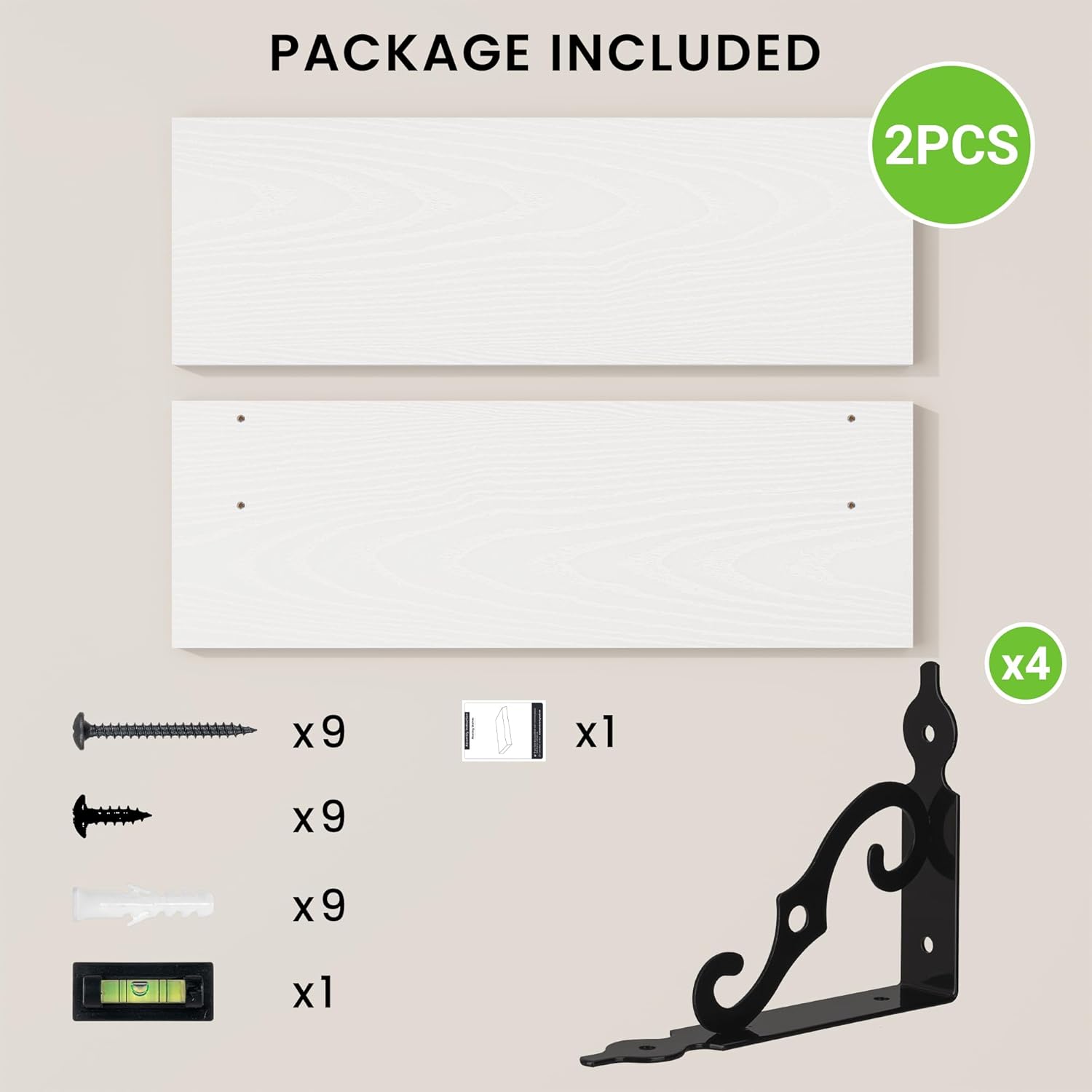 RICHFOCUS Floating Shelves for Wall Decor, 24Inch Rustic Shelves Set of 2, 24W x 8D Floating Shelves Wall Mounted with Metal Brackets, Wood Shelves for Living Room Bedroom Kitchen, White
