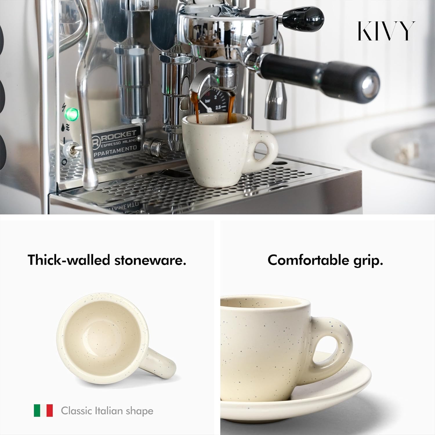KIVY 3 oz Espresso cups set of 4 - Thick walled stoneware espresso cup set - Italian style espresso cups and saucers - Demitasse cups set of 4 - Coffee mugs - Demitasse cups and saucers sets