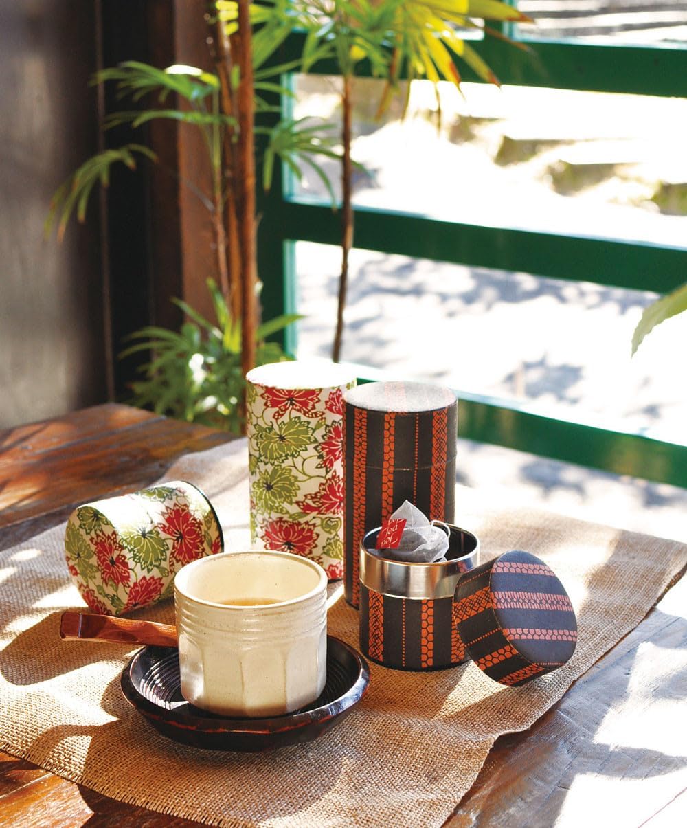 Japanese Pokkan Coffee Spice Tea Tin Canister Washi Paper Storage with Lid 7.05 oz Capacity (Hana Yukiwa)