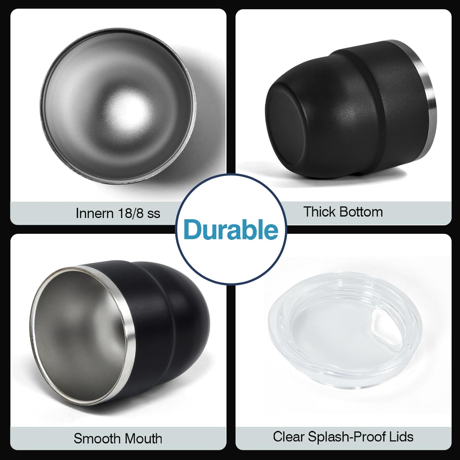 - DOUBLE WALL STAINLESS STEEL: Our espresso cups are made from double wall 18/8 stainless steel, vacuum insulated. Compared to ceramic lining, stainless steel lining are more durable, anti-scald, odourless, not break easily, and better at retaining hot or cold. Whether it's a hot coffee or an iced coke, this small cup is up to the task!