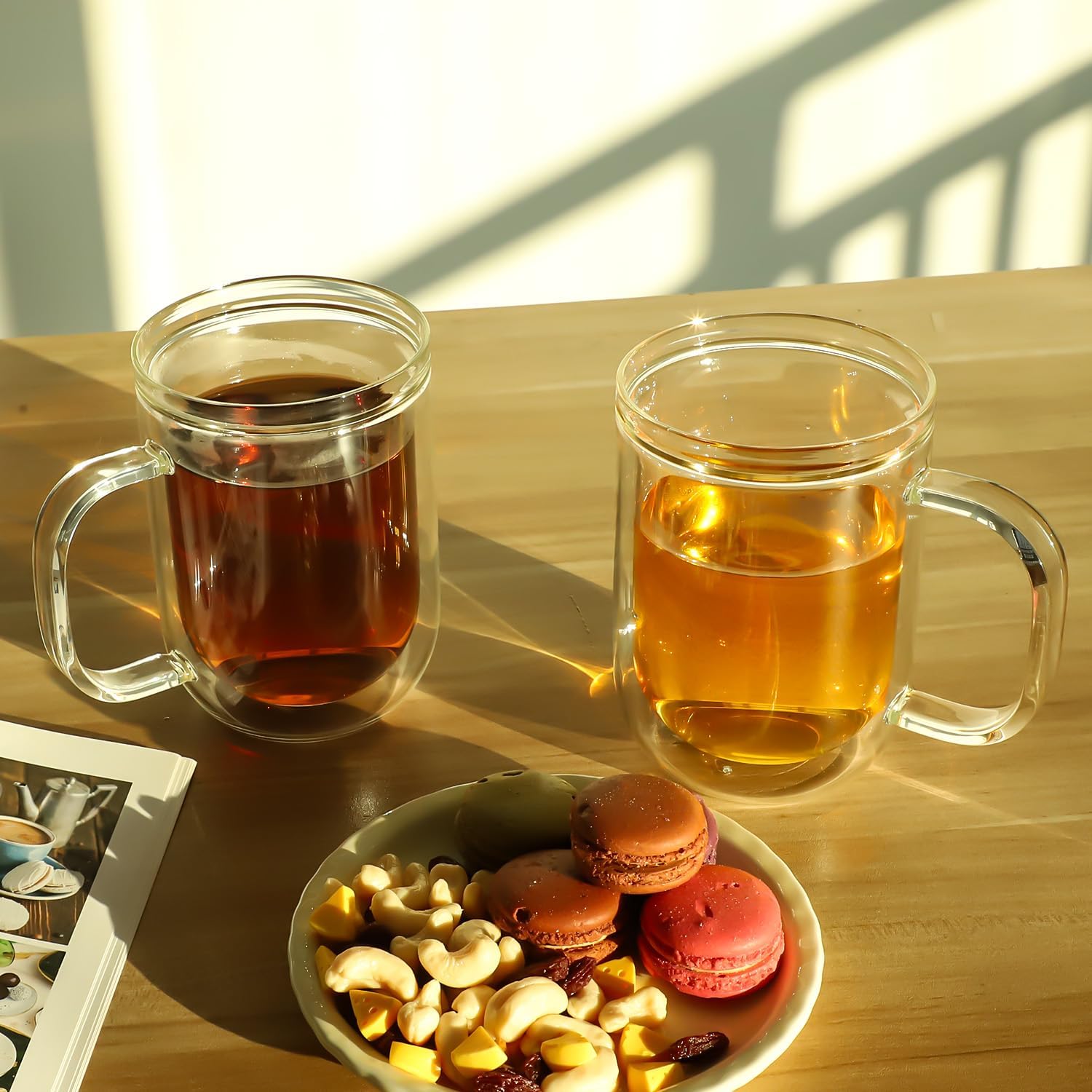 Aquach 16 Oz Double Walled Glass Coffee Mugs, Clear Glass Coffee Tea Cups, Microwave and Dishwasher Safe Home Office Insulated Glass Cups Perfect for Americano Latte Hot&Cold Beverages, 2-Pack
