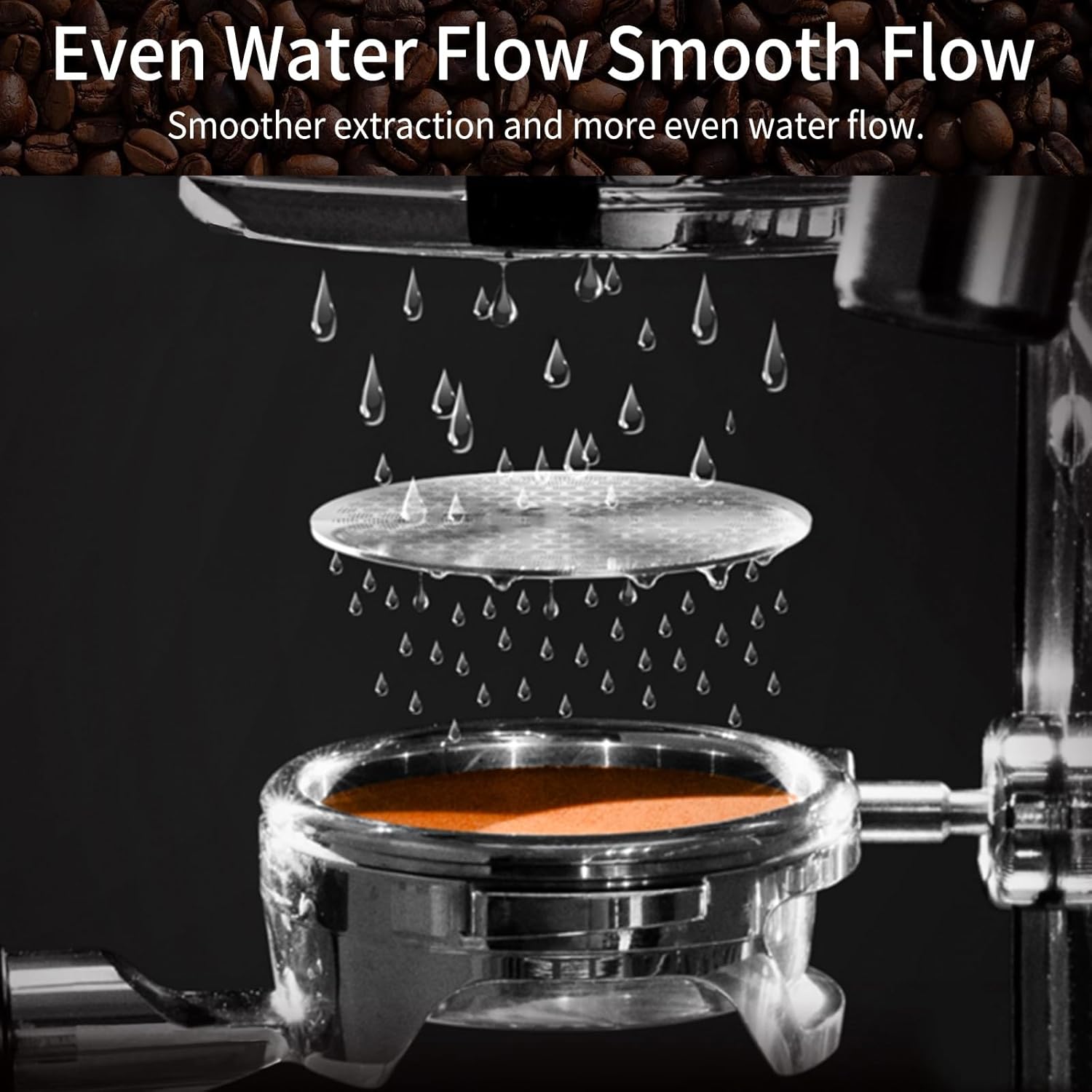 - food-grade304 stainless steel espresso puck screen effectively isolates coffee grounds to prevent clogging in the espresso machine's brewing head, thus extending the life of your coffee maker It is thinner and more robust resistant to deformation, and easy to clean, portafilter from damage, Exquisite distribution tool