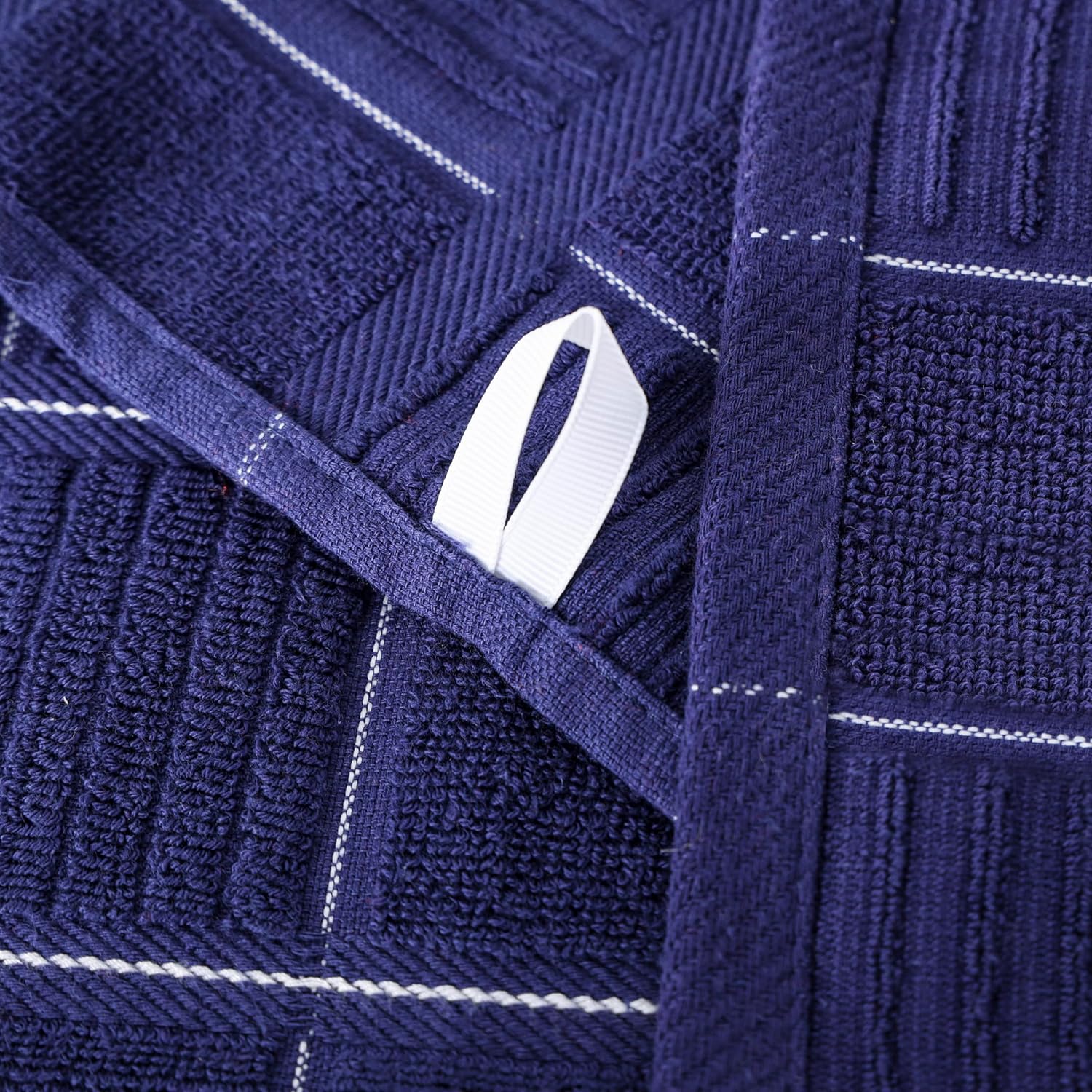 - With hanging loop for easy storage. On the kitchen towels set there is a hanging loop on the middle, you can easily put it on the hook and other places that is convenient for you