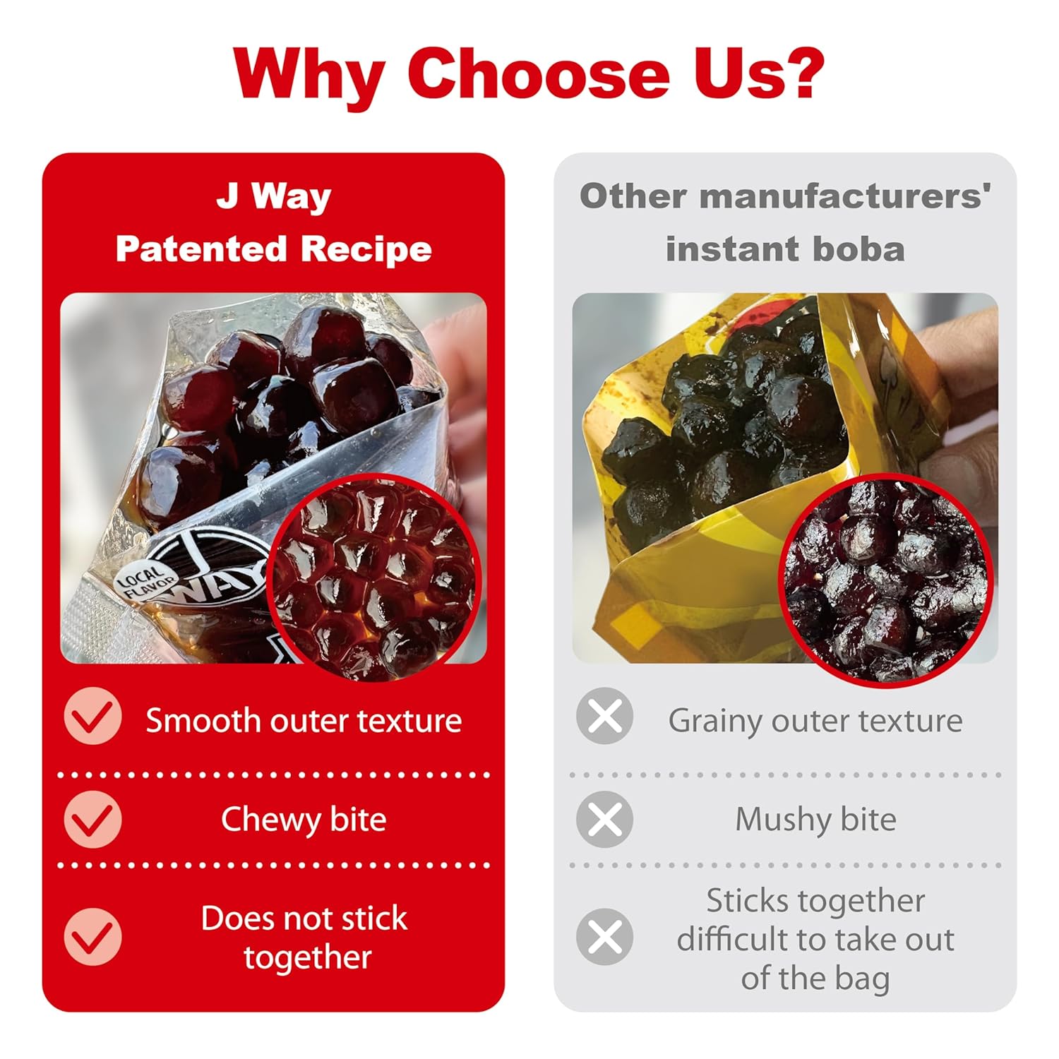 J WAY BOBA Authentic Instant Tapioca Boba Pearls for Milk Tea, Smoothies and Desserts, Brown Sugar Flavor (Ready in Just 20 Seconds) - 4 Servings