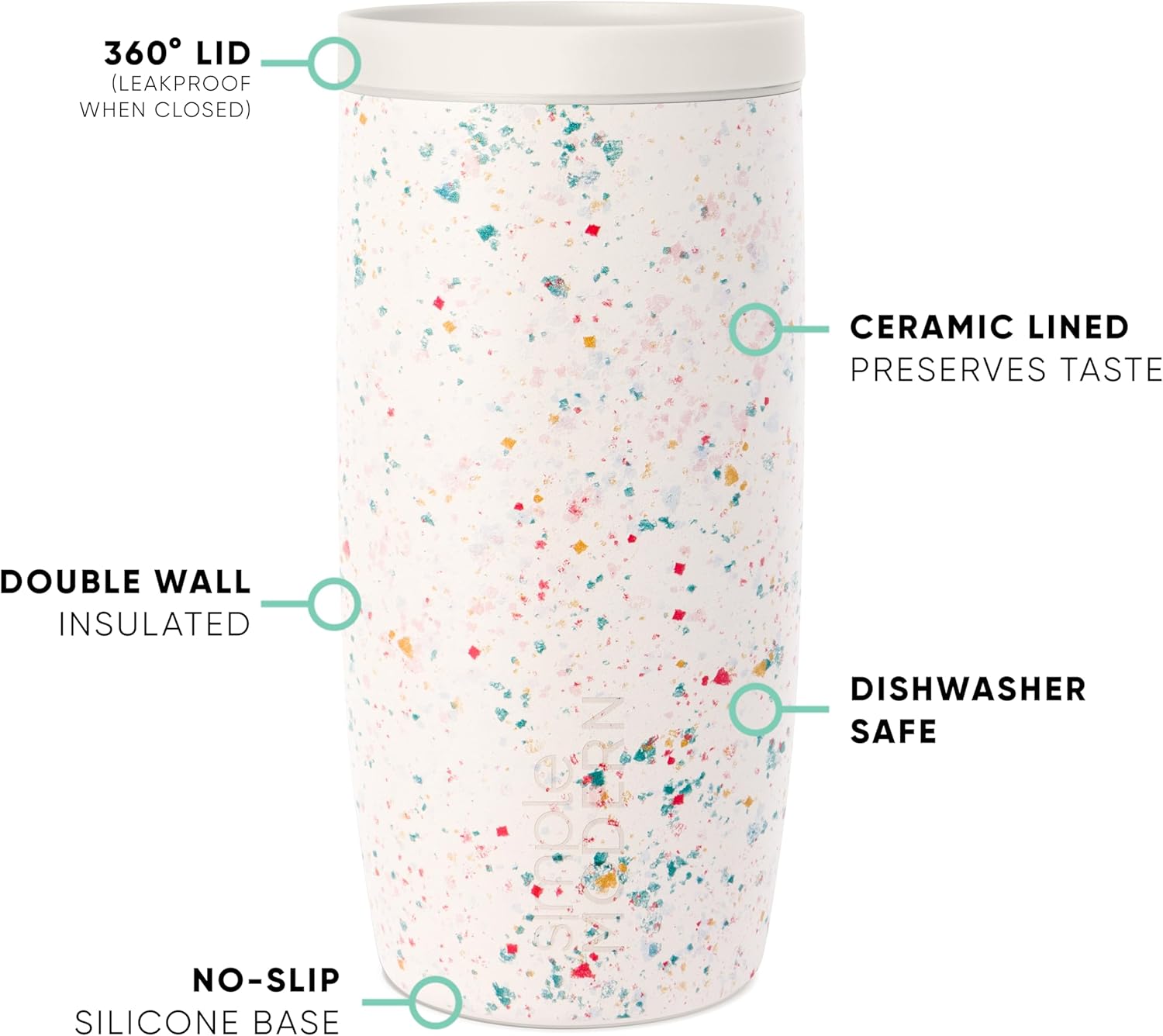 Simple Modern Travel Coffee Mug Tumbler with 360° Lid | Ceramic-Lined Insulated Stainless Steel Cold Brew Iced Coffee Cup Thermos | Gifts for Women Her Him | Voyager Signature | 16oz | Cream Terrazzo