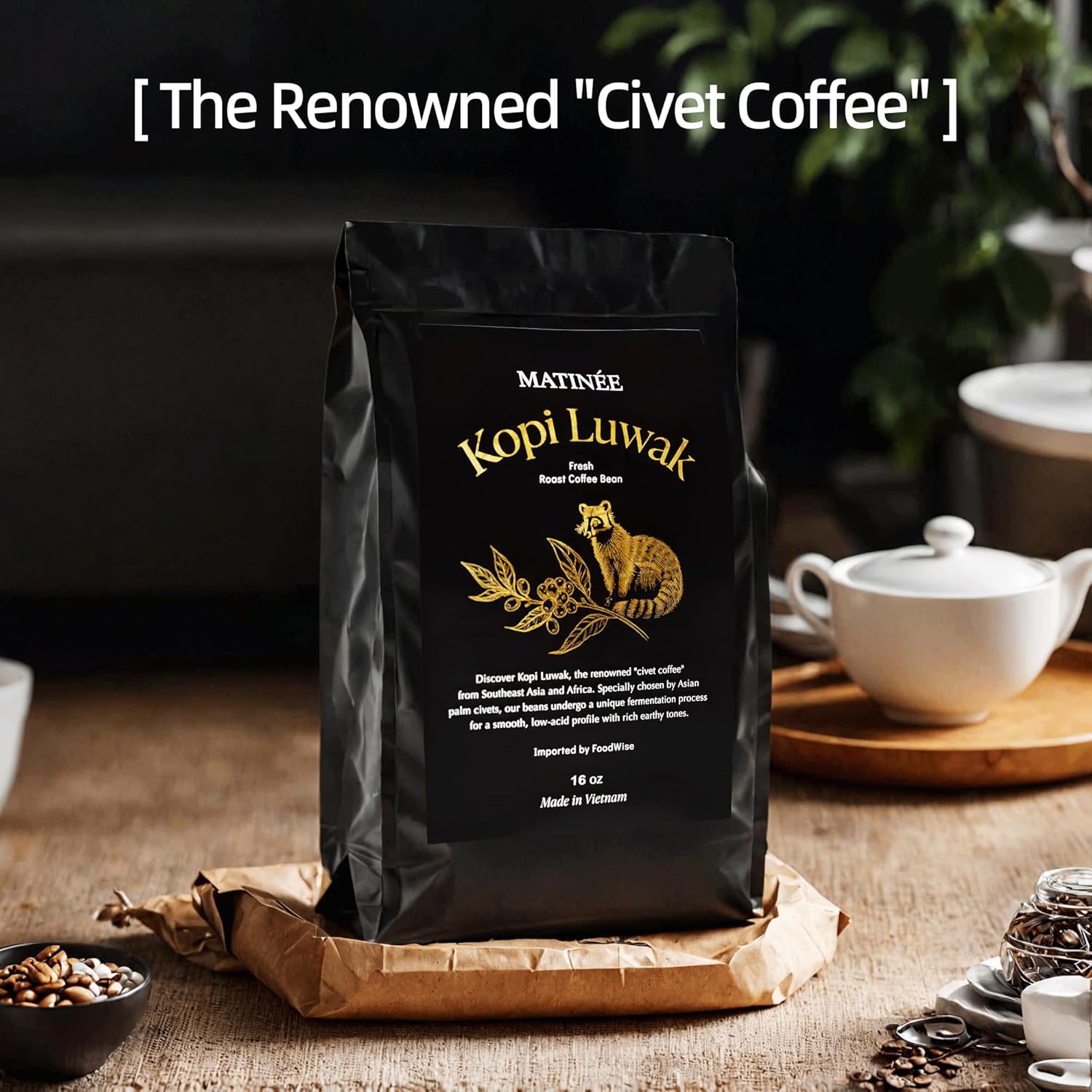 MATINÉE Wild Kopi Luwak Coffee Beans, Medium Roast, Whole Bean Coffee, Civet Coffee, Wild Kopi Luwak Coffee - Sustainably Sourced From Vietnam, 16oz / 454 Grams