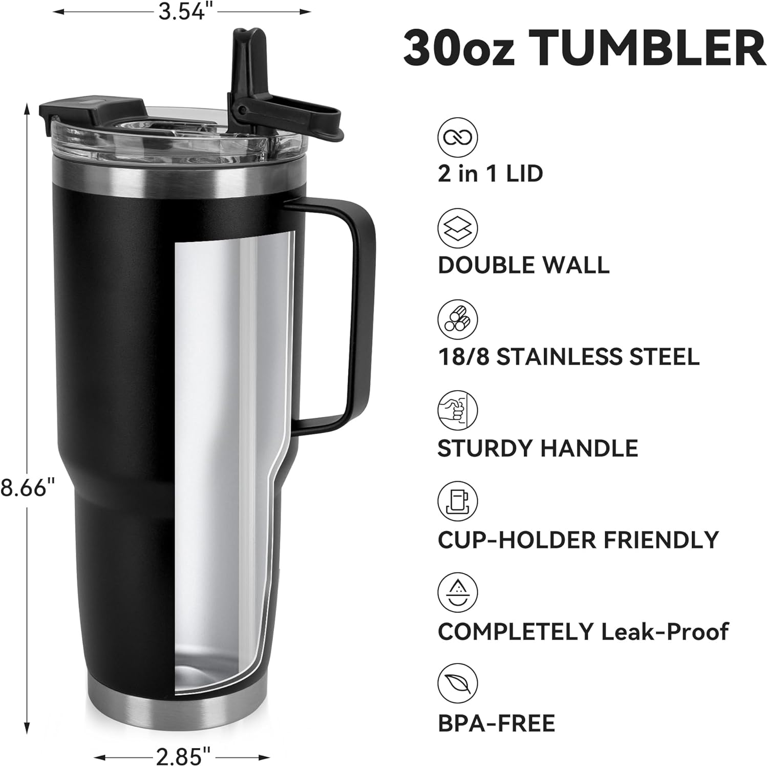 - Double Wall Vacuum Mugs: The 30 oz tumbler is made of 18/8 food-grade stainless steel,Insulated tumbler is double-walled and vacuum keeps iced for 12h, hot for 8h.