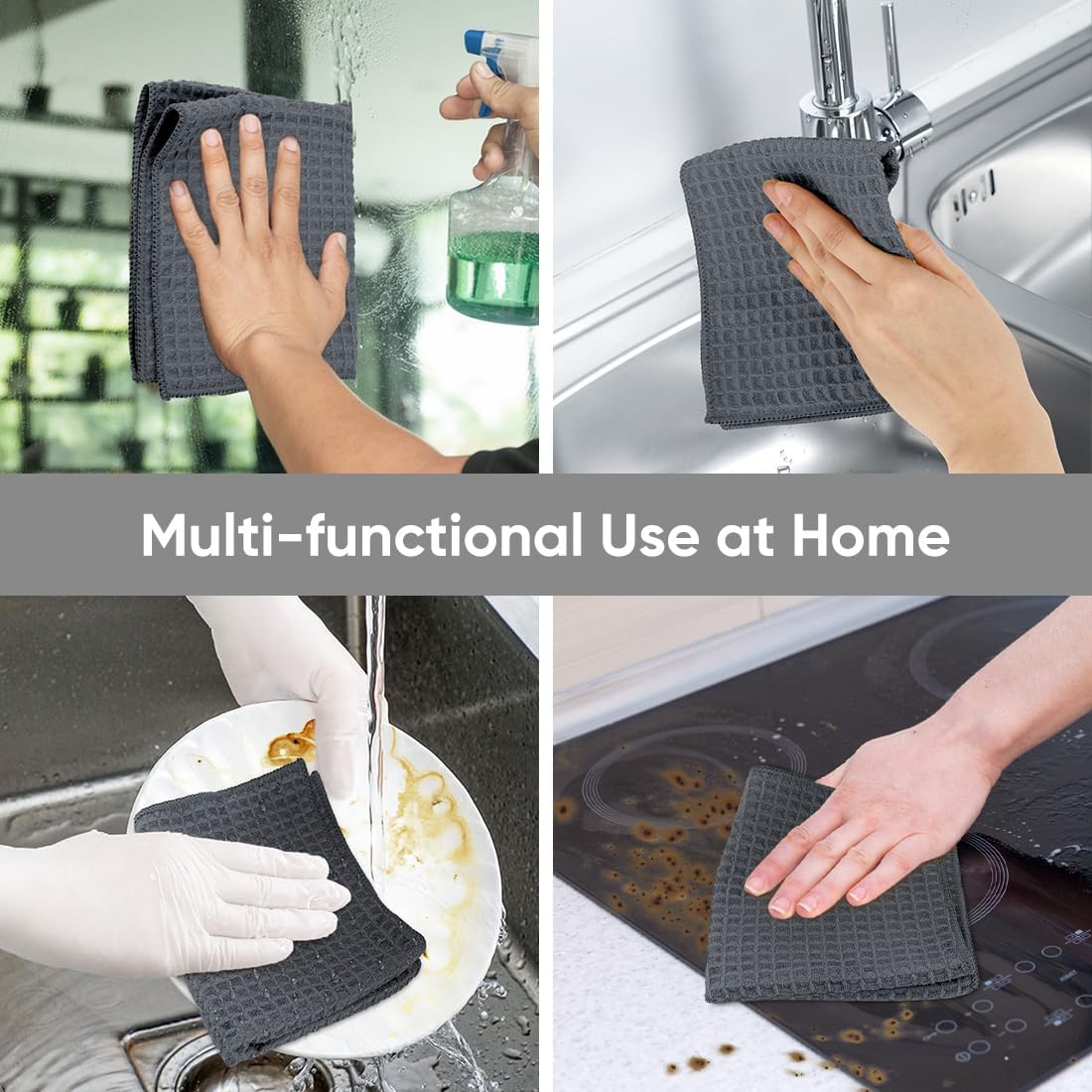 HOMEXCEL Waffle Weave Microfiber Cleaning Cloth, 6 Pack Highly Absorbent Cleaning Rag for Household, Reusable Kitchen Towels, Scratch-Free Barista Towels, 12 x 12 Inches, Grey