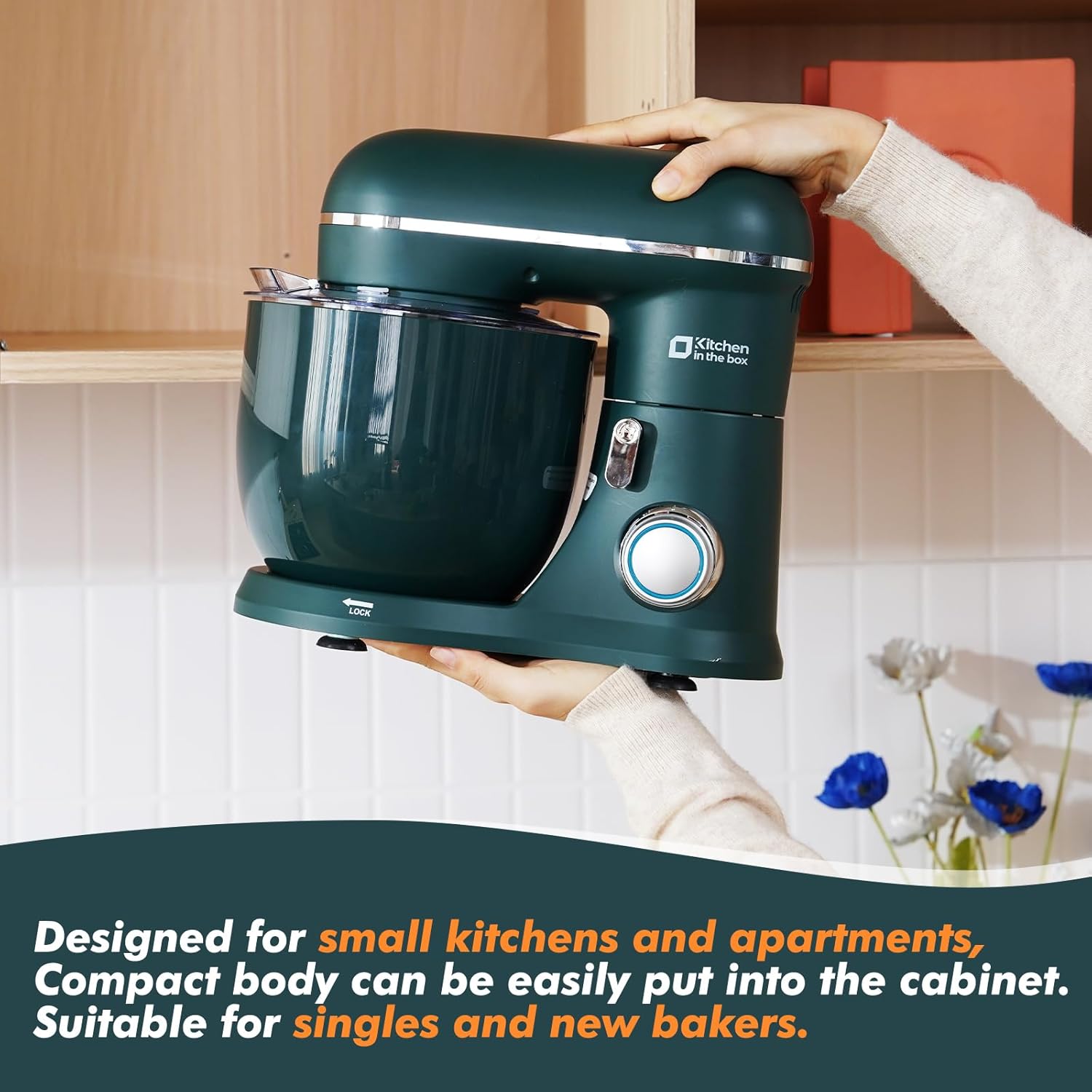 Kitchen in the Box Stand Mixer, 3.5QT Two Bowls Small Kitchen Electric Mixer, 10-Speed Portable Lightweight with Matte Finish, Egg Whisk, Dough Hook, Beater (Turquoise Green, 3.5QT)