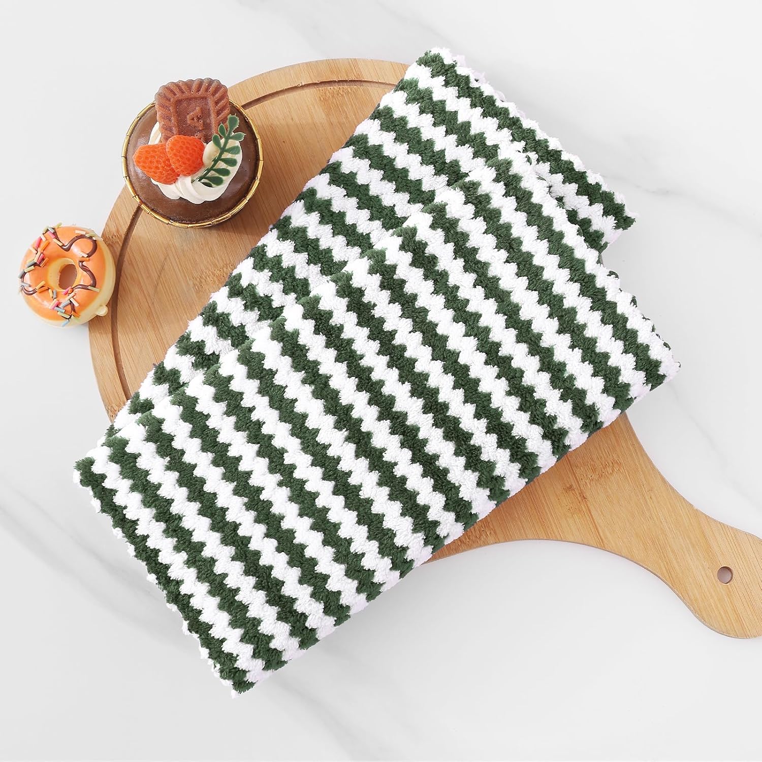 Homaxy Kitchen Towels(24 Pack, 10 x 20 inches), Ultra Soft and Absorbent Dish Towels, Reusable Fast Drying Microfiber Cleaning Cloth, Coral Velvet Wave Design No-lint, Grass Green