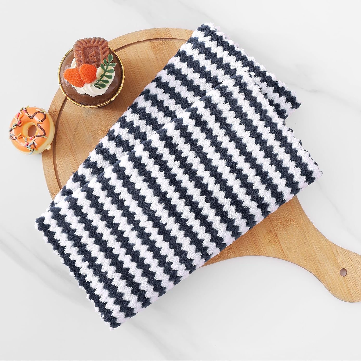 Homaxy Kitchen Towels(24 Pack, 10 x 20 inches), Ultra Soft and Absorbent Dish Towels, Reusable Fast Drying Microfiber Cleaning Cloth, Coral Velvet Wave Design No-lint, Dark Grey