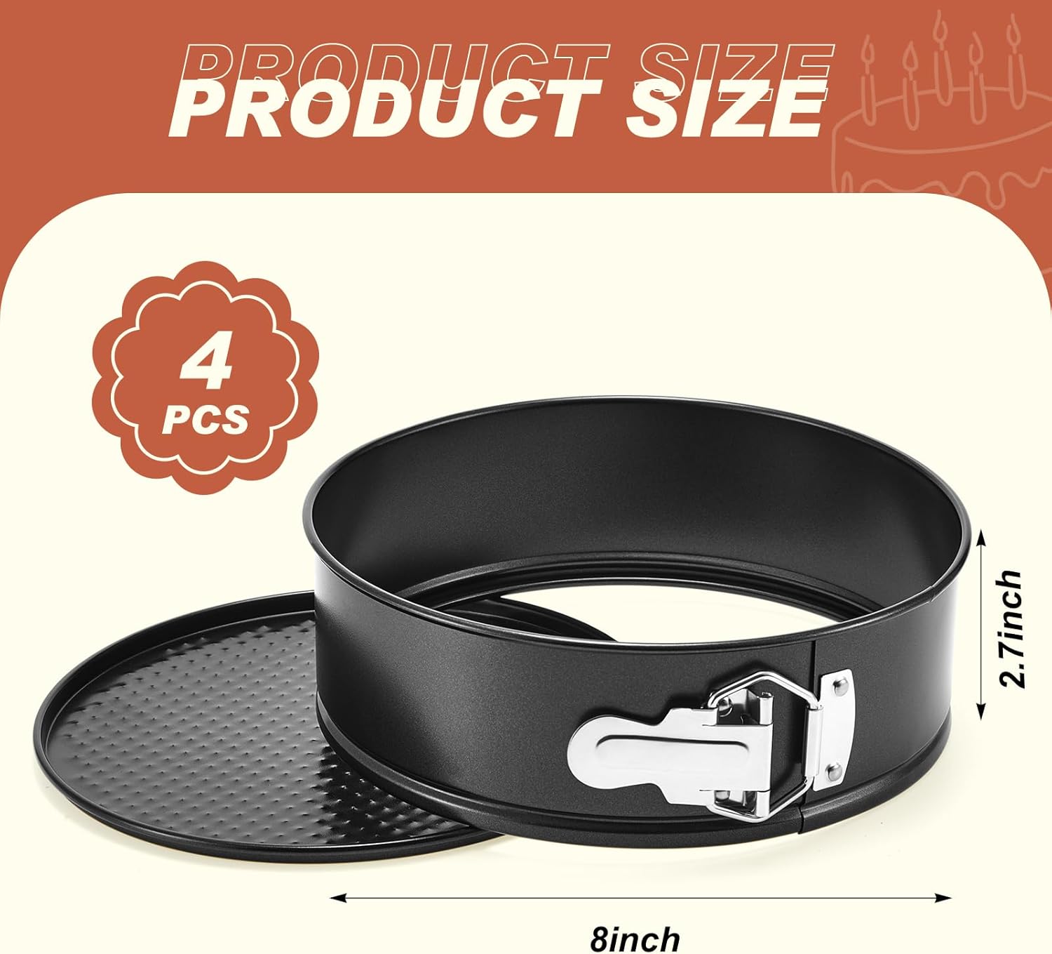 4 Pcs 8 Inch Non Stick Springform Pan with Removable Bottom Carbon Steel Cheesecake Pan Round Springform Cake Mold with Stainless Steel Spring Buckles for Baking Kitchens Restaurant