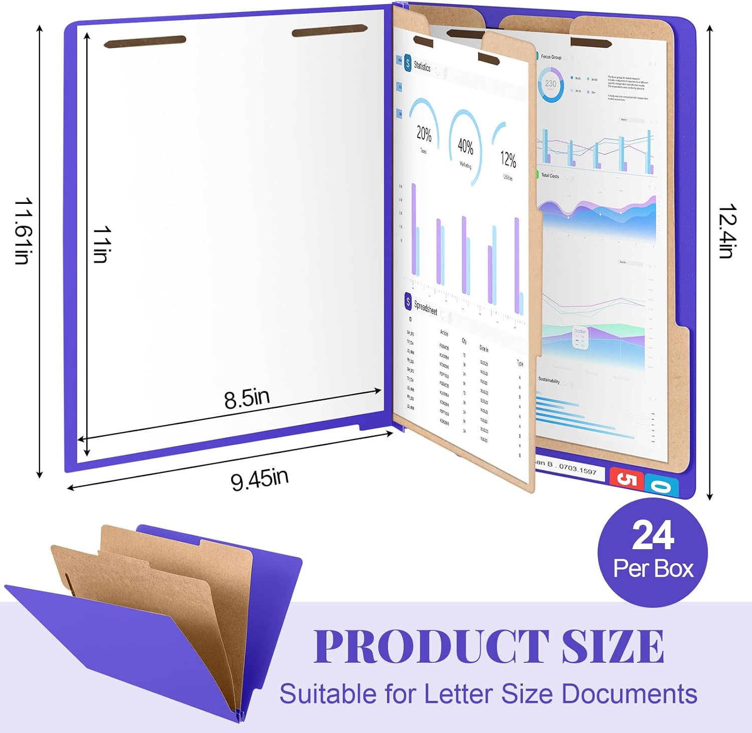 24 Pcs Classification Folders Letter Size, Back to School Supply for Teacher, Student, 2 Dividers Pressboard File Folder Bulk with Fasteners, 3.5 Inch Expanding File Organizer(Purple)