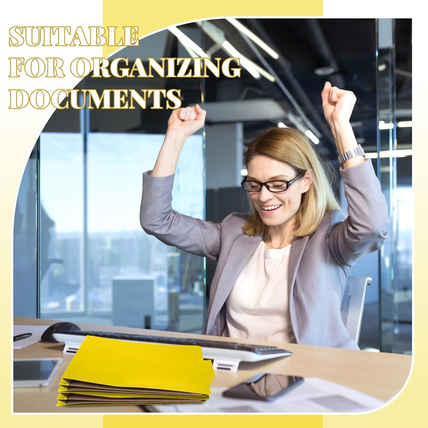 24 Pcs Classification Folders Letter Size, Back to School Supply for Teacher, Student, 2 Pocket Dividers Pressboard File Folder Bulk with 2 Fasteners, 2 in Expanding File Organizer (Yellow)