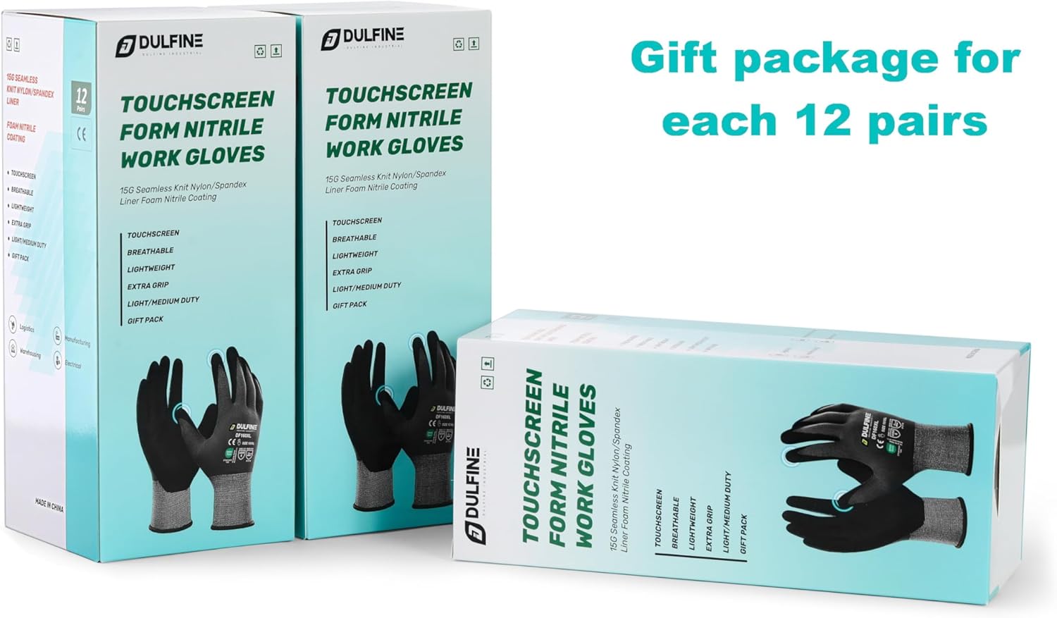 DULFINE Work Gloves for Men and Women,Hi-Vis Yellow Knit Nylon Glove with MicroFoam Nitrile Coated-12 Pairs Pack,Ideal for General Purpose,Automotive,Home Improvement,Painting(Extra Large)