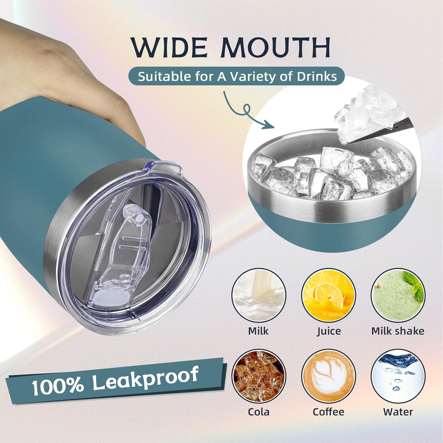 - âšăSpill-proof Lidă: The lid of the thermos cup is made of unique sealing technology, basically no leakage if you move it at any angle; If the cup is filled with hot water, please open one of the drinking holes first, so that the lid will be easier.