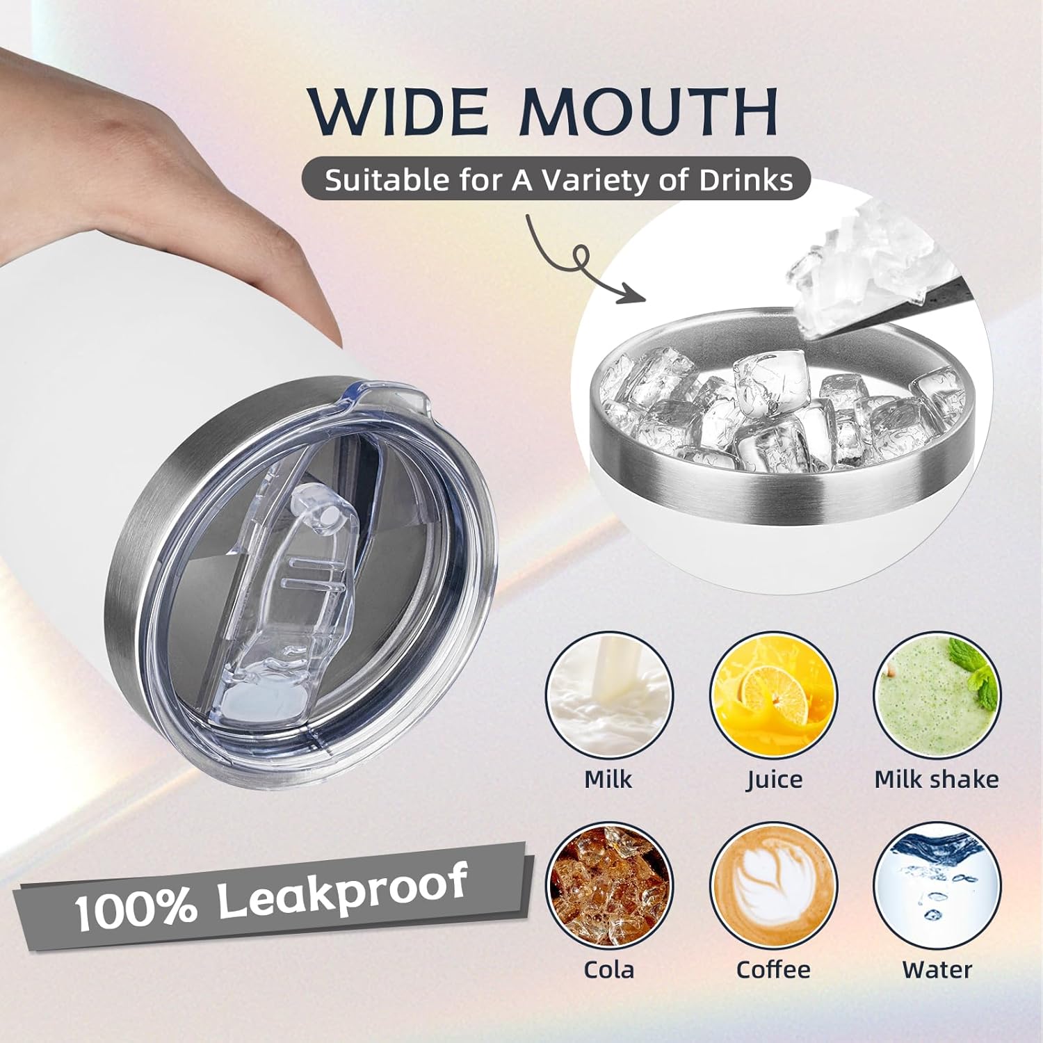 MEZMUT 20oz Coffee Tumbler with Lid and Straw Double Wall Vacuum Insulated Cup Stainless Steel Travel Mugs Insulated for Hot Cold Leakproof Powder Coated Tumbler for Indoor Outdoor(White, 4)