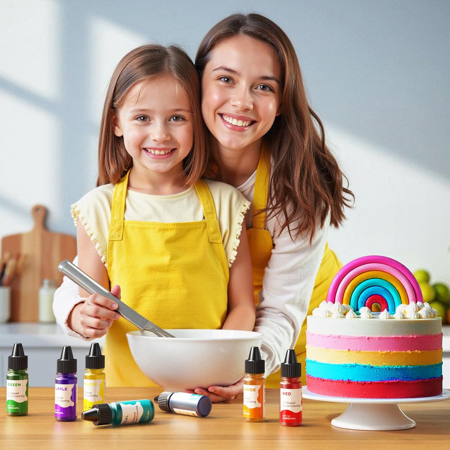 - Rainbow Oil Food Coloring for Chocolate Decorating - Vivid oil based food coloring are specially made by the Dessert Master,every color has its ingenuity.Our food color set includes : Red,Orange,Yellow,Green,Teal, Blue,Purple. This rainbow daily color palette can improve the usage rate of baking enthusiasts
