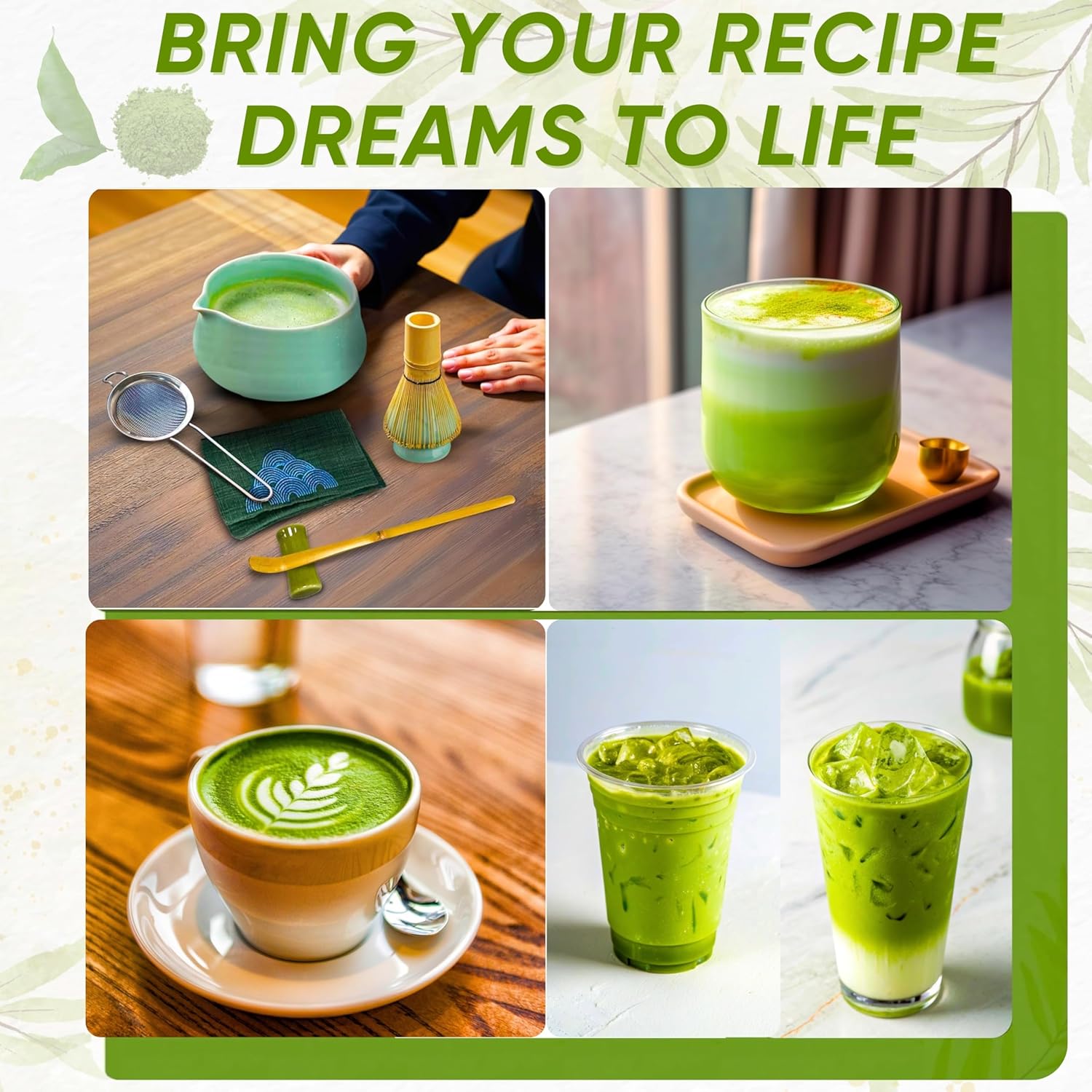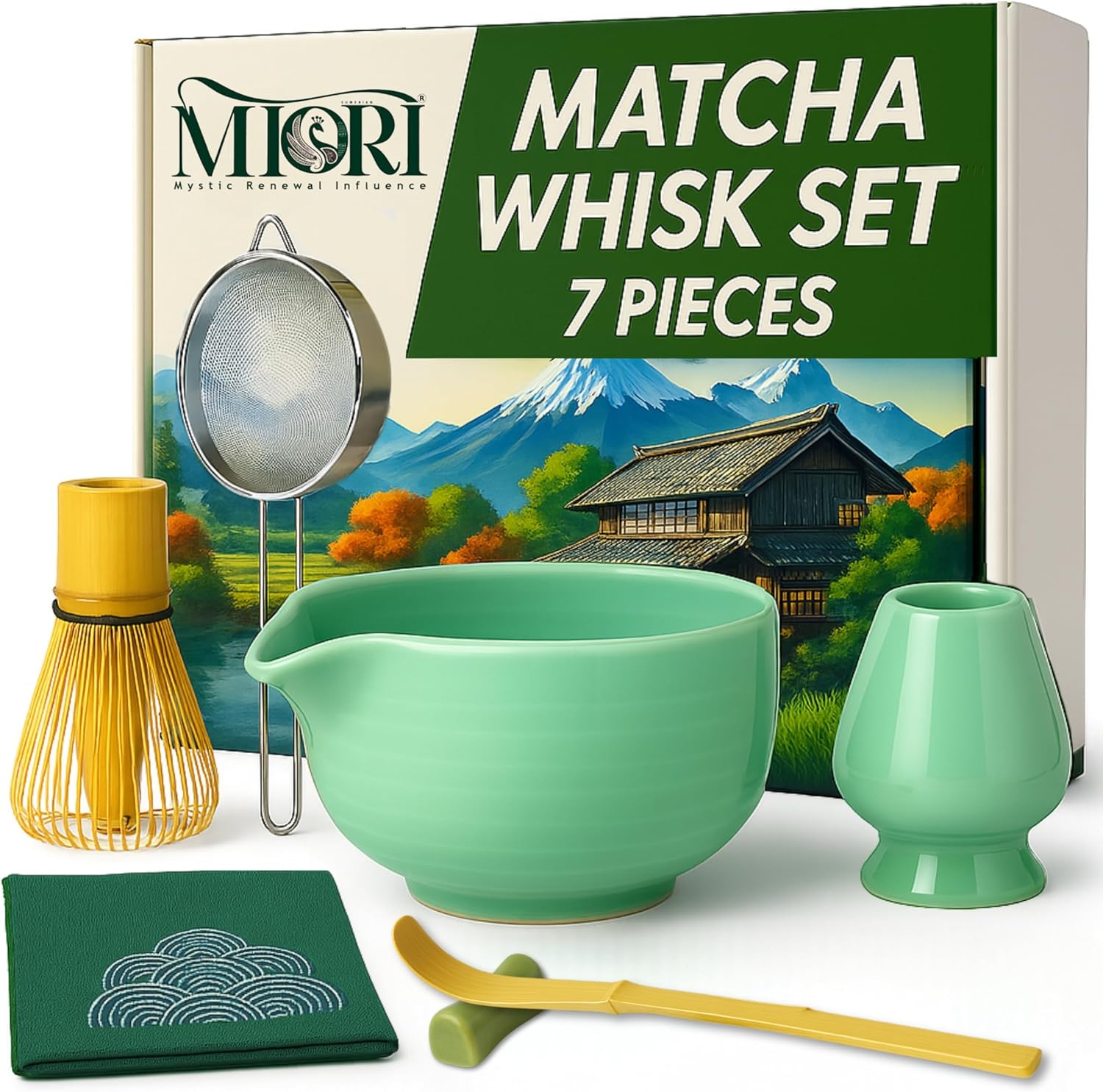 - 7 UNIQUE PIECES FOR YOUR MATCHA - Experience the art of matcha with a 7-piece matcha kit set featuring a matcha whisk and bowl, along with a scoop, sifter, holder, and mat. Perfectly curated for beginners and tea connoisseurs alike.
