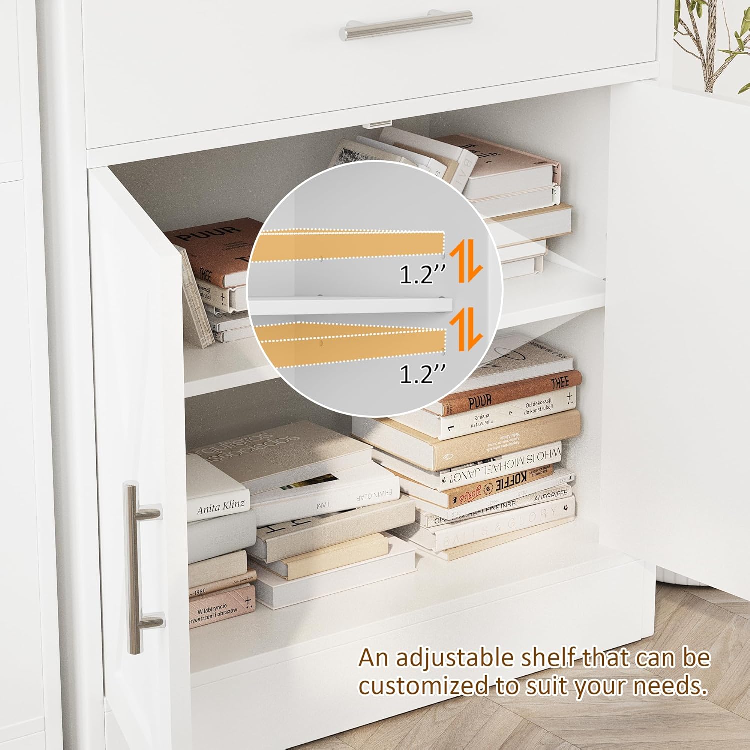- FUNCTIONAL ACCENT CABINET: This wooden storage cabinet can be used as a kitchen pantry, a coffee bar station, a hutch cupboard, a wine cabinet, or even a home office cabinet to organize your stuff.