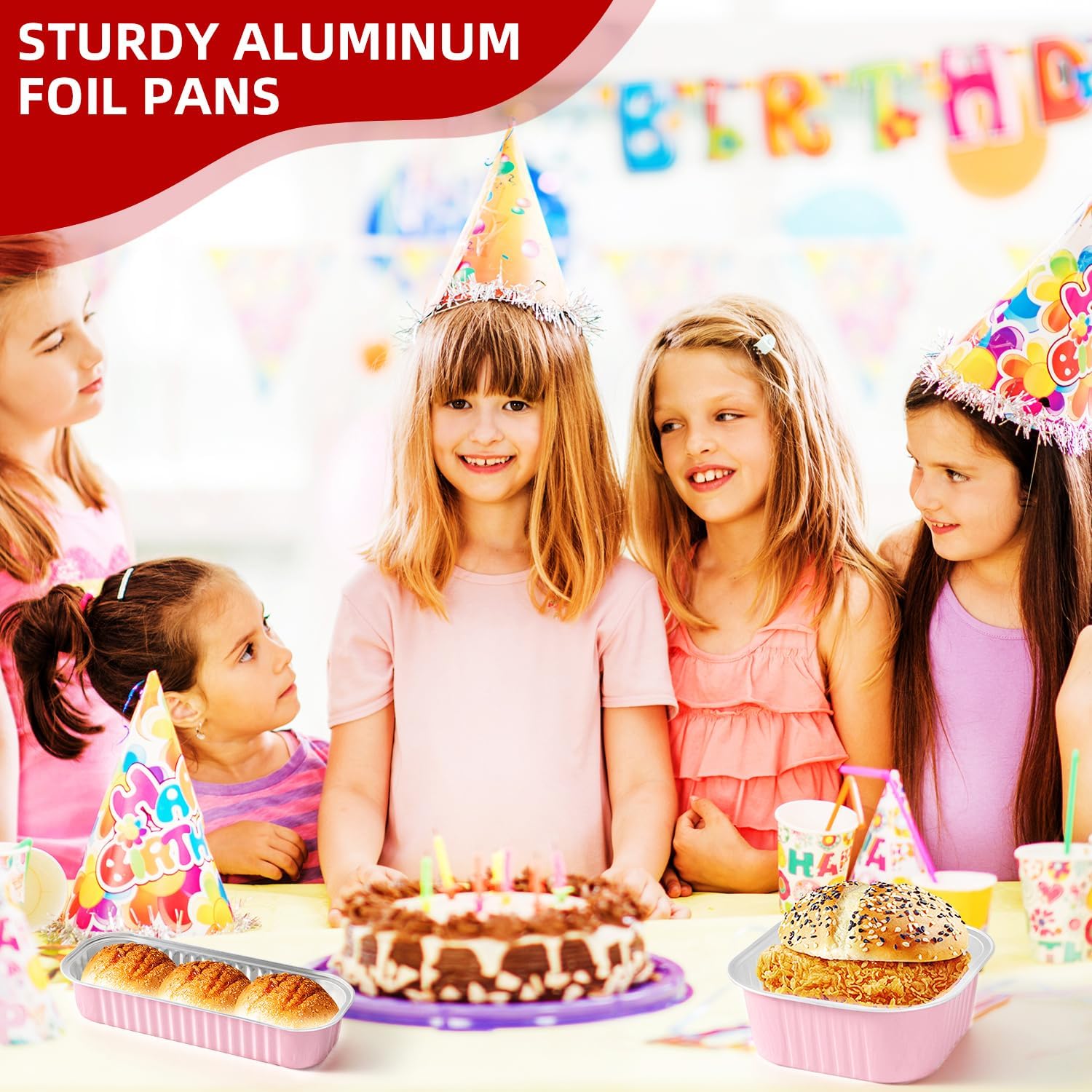 30 Pack Pink Disposable Rectangular Aluminum Foil Loaf Pans with Lids,6.8oz Mini Cake Pans for Baking, Loaf Baking Pans, Small Cake Container