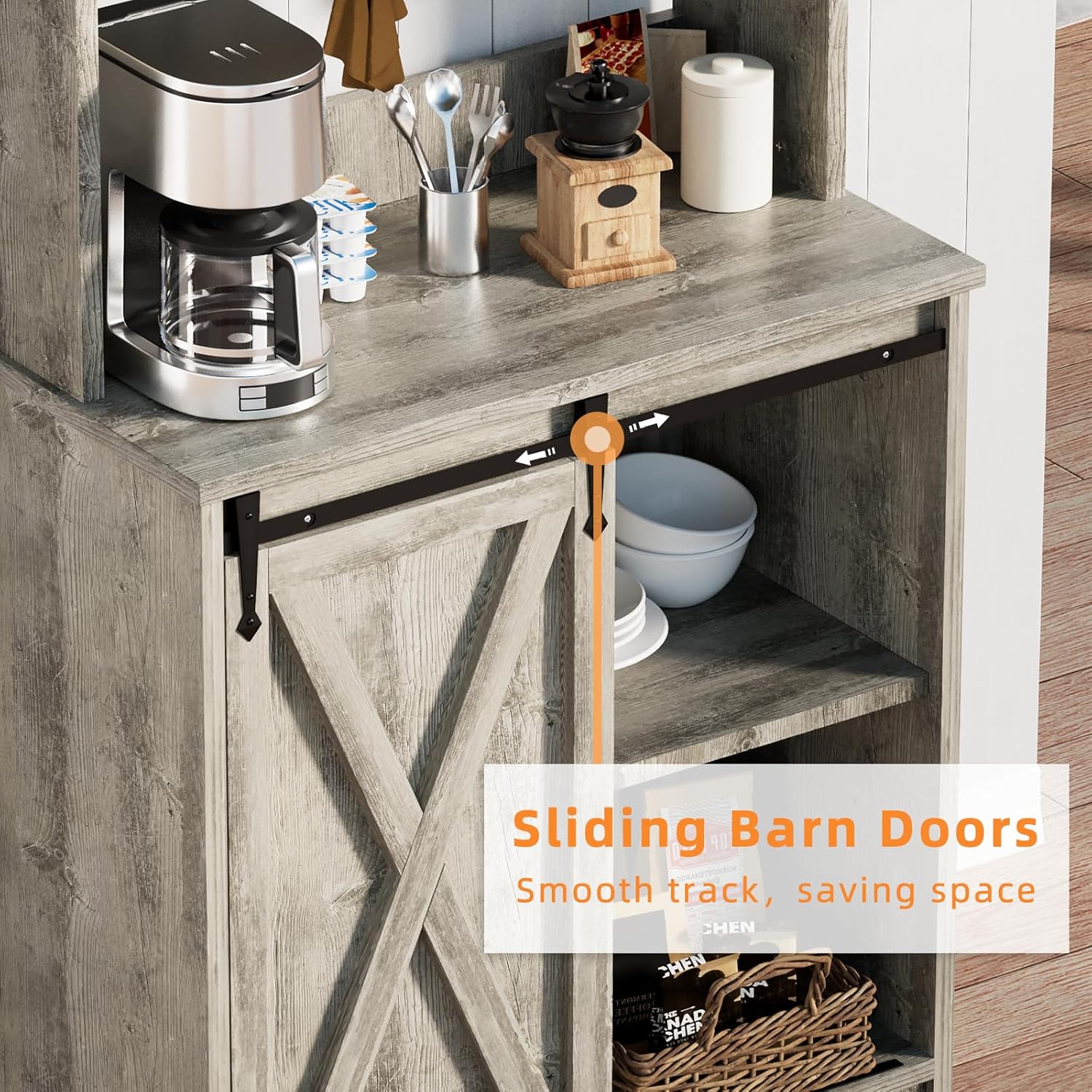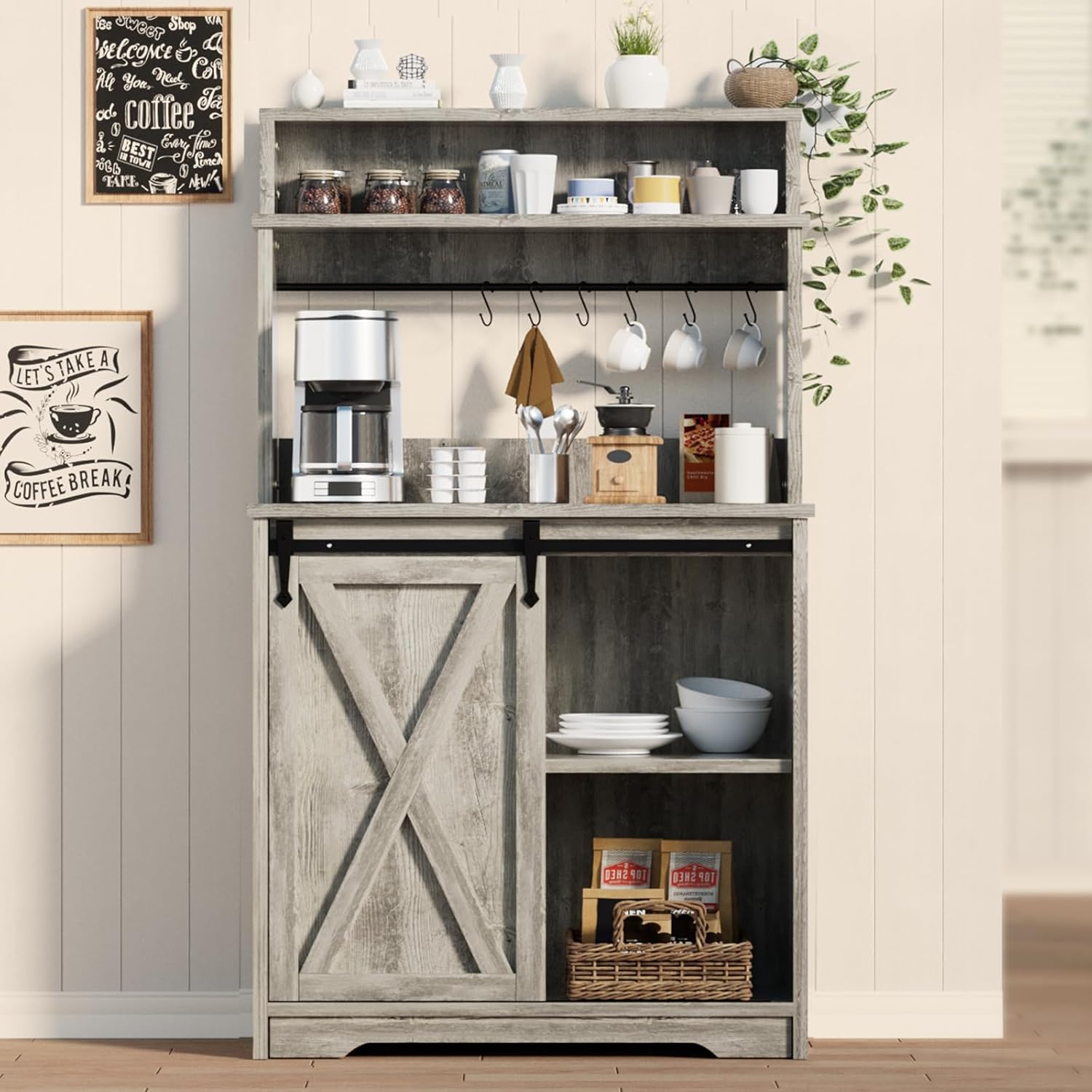 - Multi-functional Use: Effortlessly transform your coffee hutch with storage into a buffet cabinet, coffee hutch, coffee station, corner coffee or storage cabinet, making it a versatile and functional addition to any room in your home.