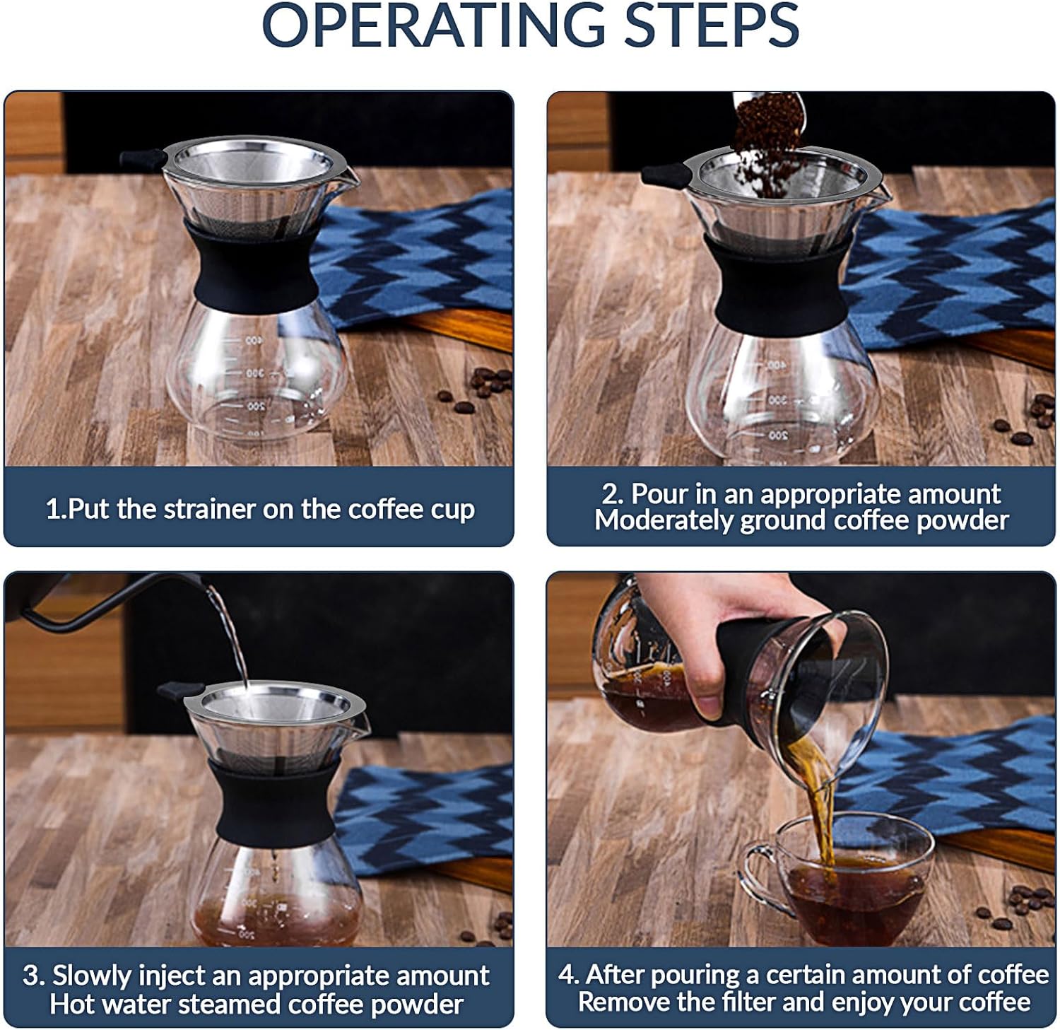 - 【SIMPLE TO USE】Simply heat the pour over coffee filter with hot water and rinse out, add coffee grounds, slowly pour in the hot water, let the coffee maker drip out the water through the fine pour over filter, and remove the coffee dripper when done, ready to enjoy your drink.