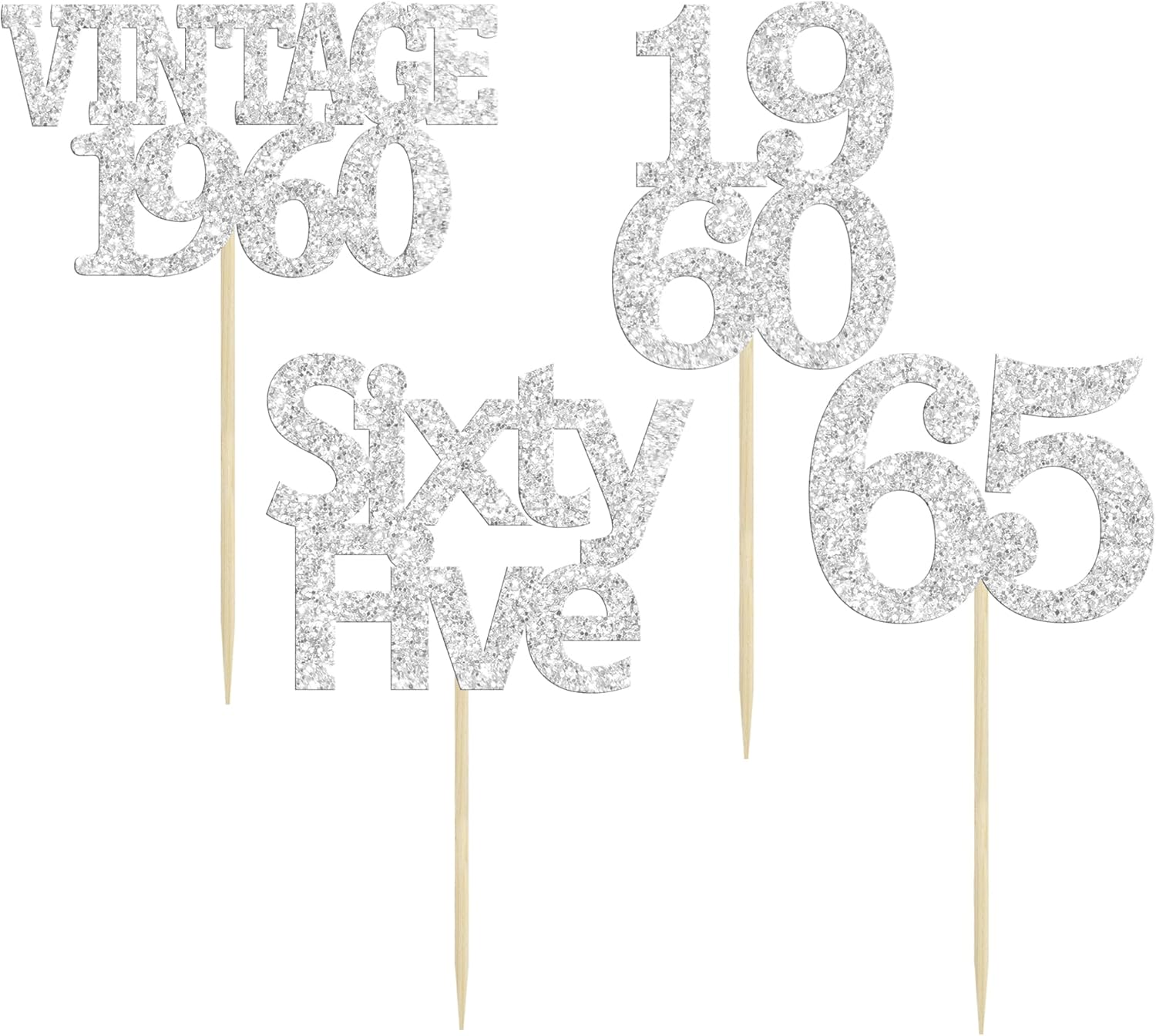 Gyufise 24Pcs 65th Birthday Cupcake Toppers Glitter Cheers to 65 Fabulous Sixty Five Vintage 1960 Cupcake Picks 65th Birthday Wedding Anniversary Party Cake Decorations Supplies Silver