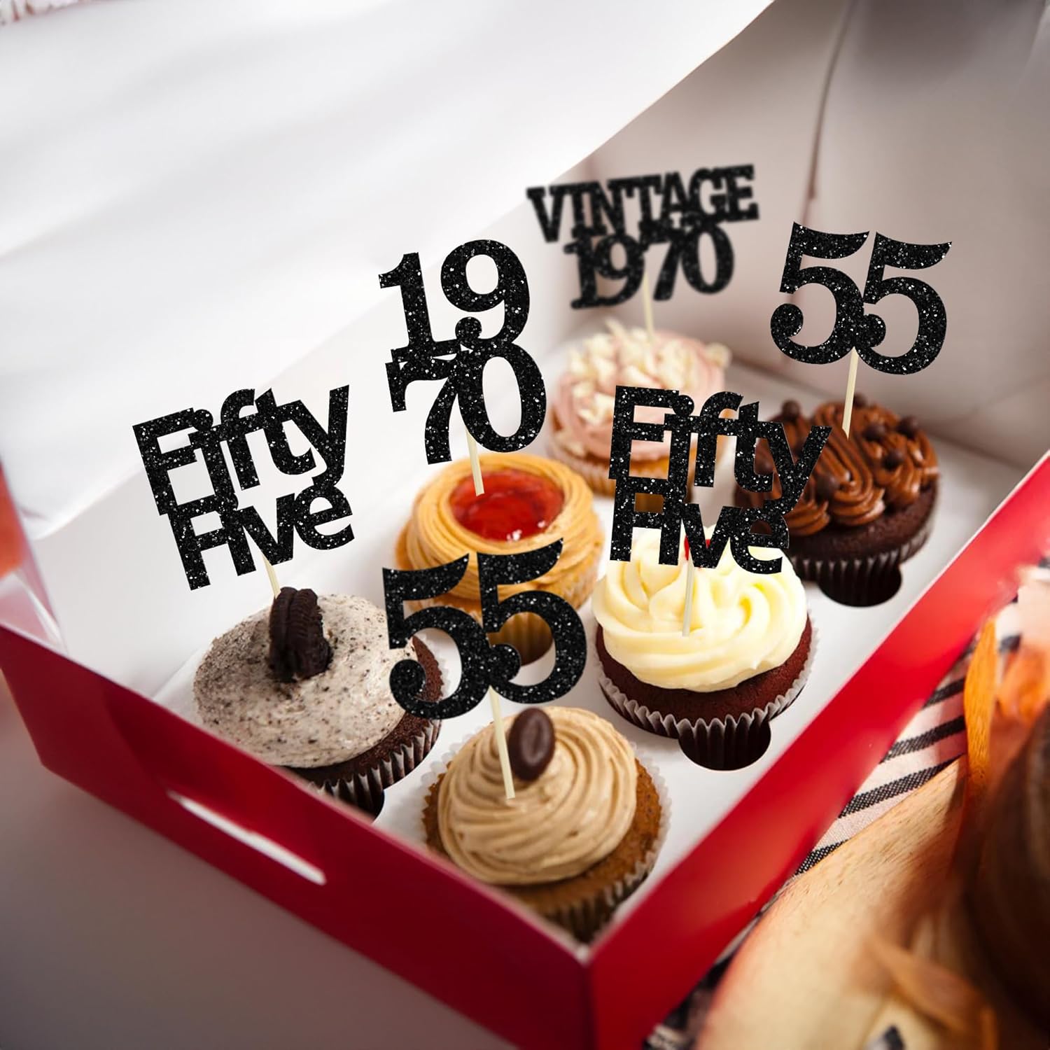 - Premium Material: These 55th Birthday Cupcake Toppers are made of high quality 300 gram card stock and food-grade toothpick, very safe to put them on cakes, cupcakes, ice cream, fruits, pie, dessert, cheese or any dish and food appetizer you want to decorate Valentine theme party decorations.