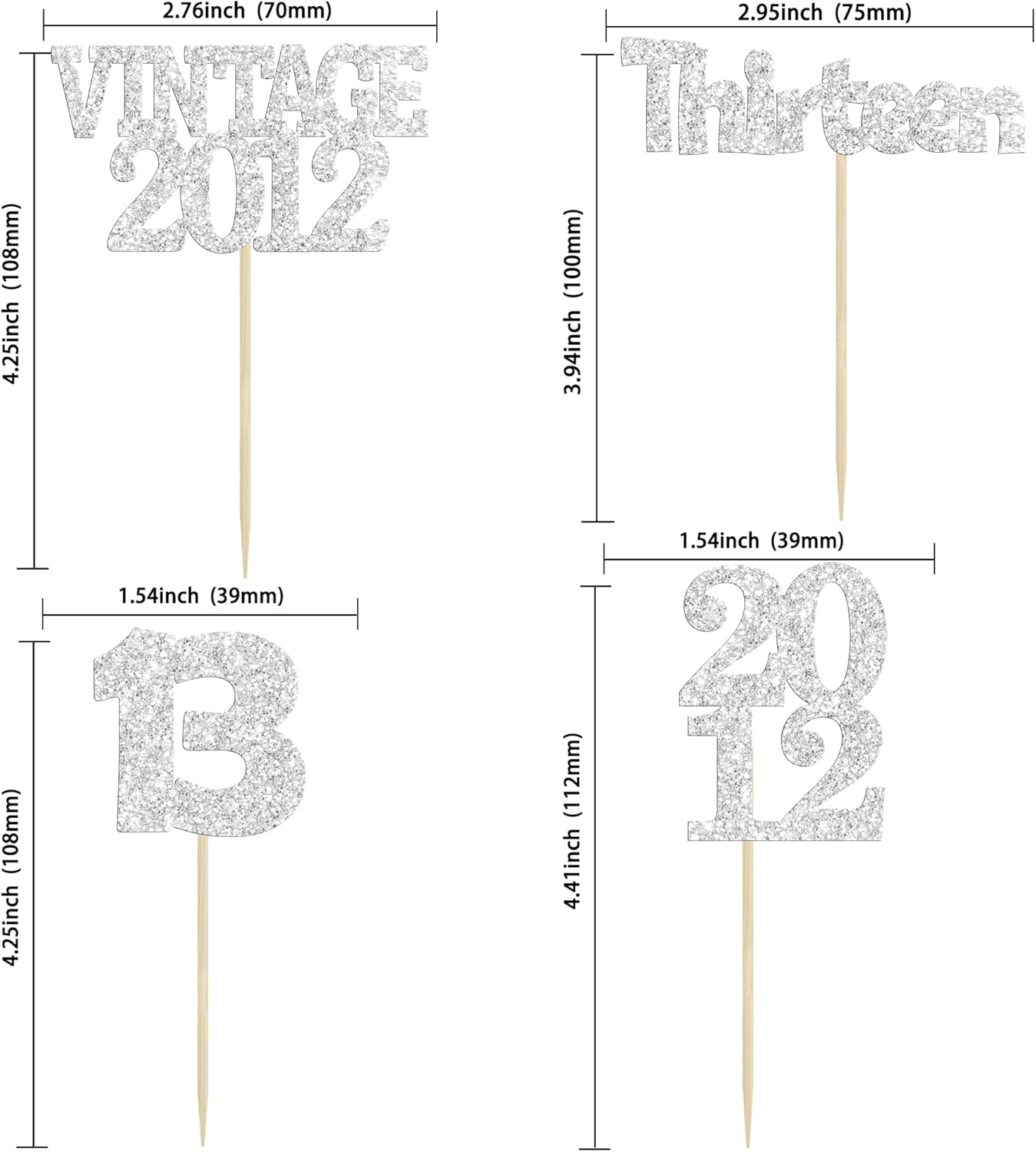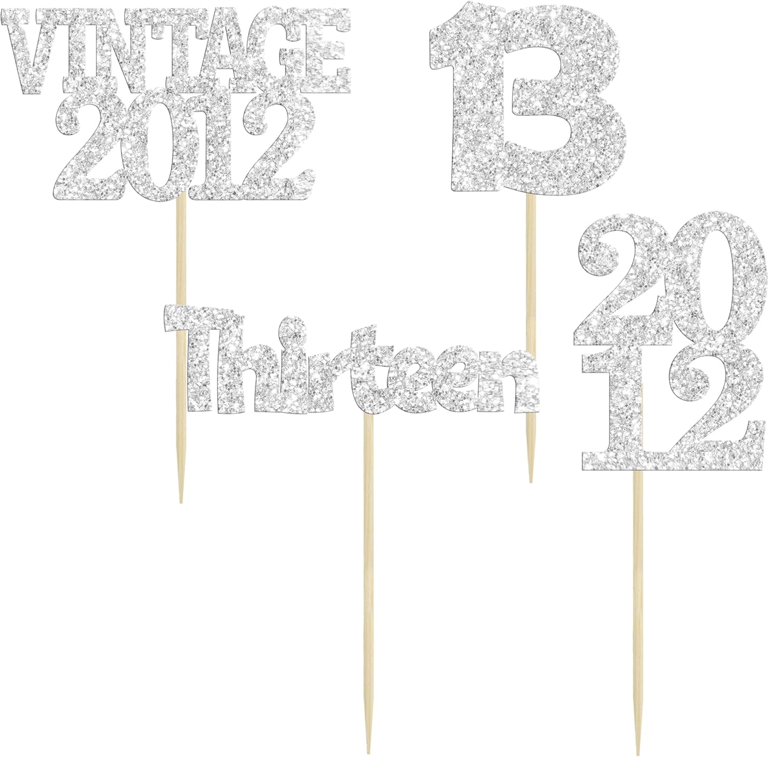 Gyufise 24Pcs 13th Birthday Cupcake Toppers Glitter Thirteen Vintage 2012 Hello 13 Years Birthday Cupcake Picks Official Teenager 13 Cake Decorations for Happy 13th Anniversary Party Silver