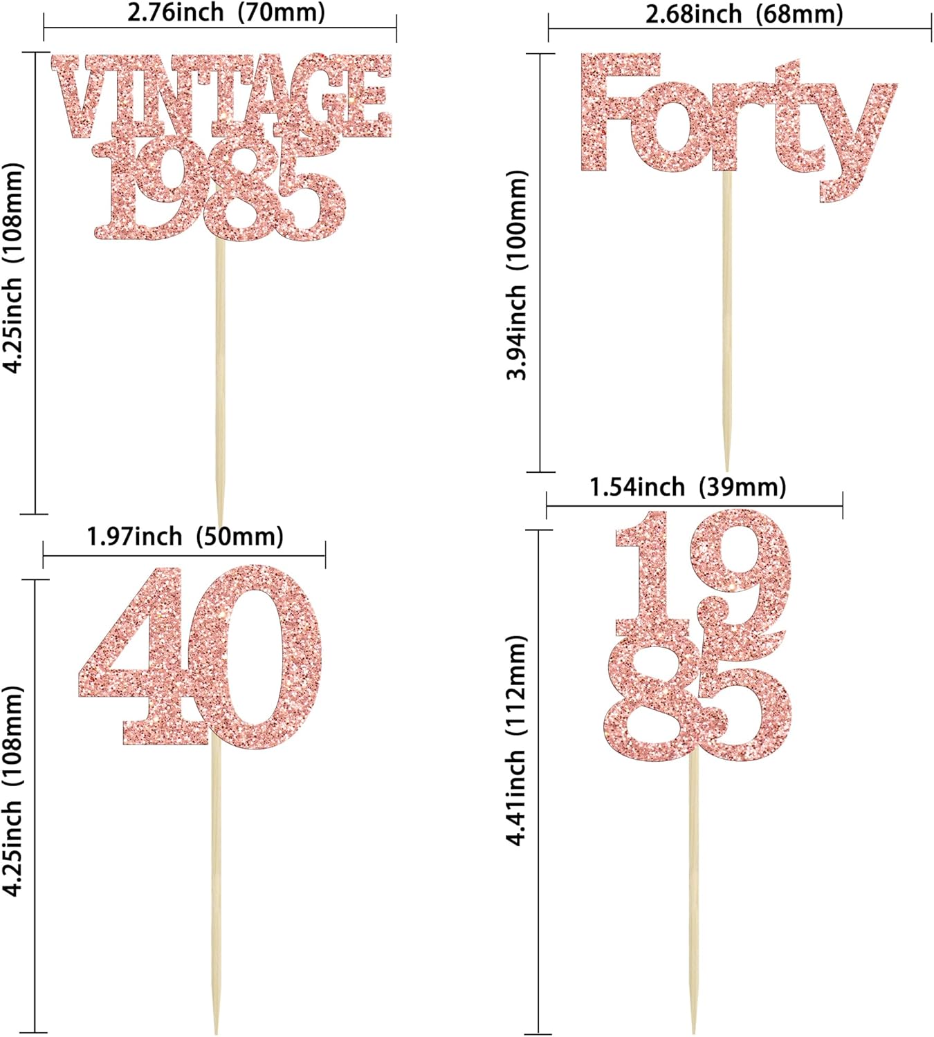 Gyufise 24Pcs Happy 40th Birthday Cupcake Toppers Glitter Forty 40 Fabulous Vintage 1985 Cake Toppers for 40th Birthday Wedding Anniversary Party Cake Decorations Supplies Rose Gold