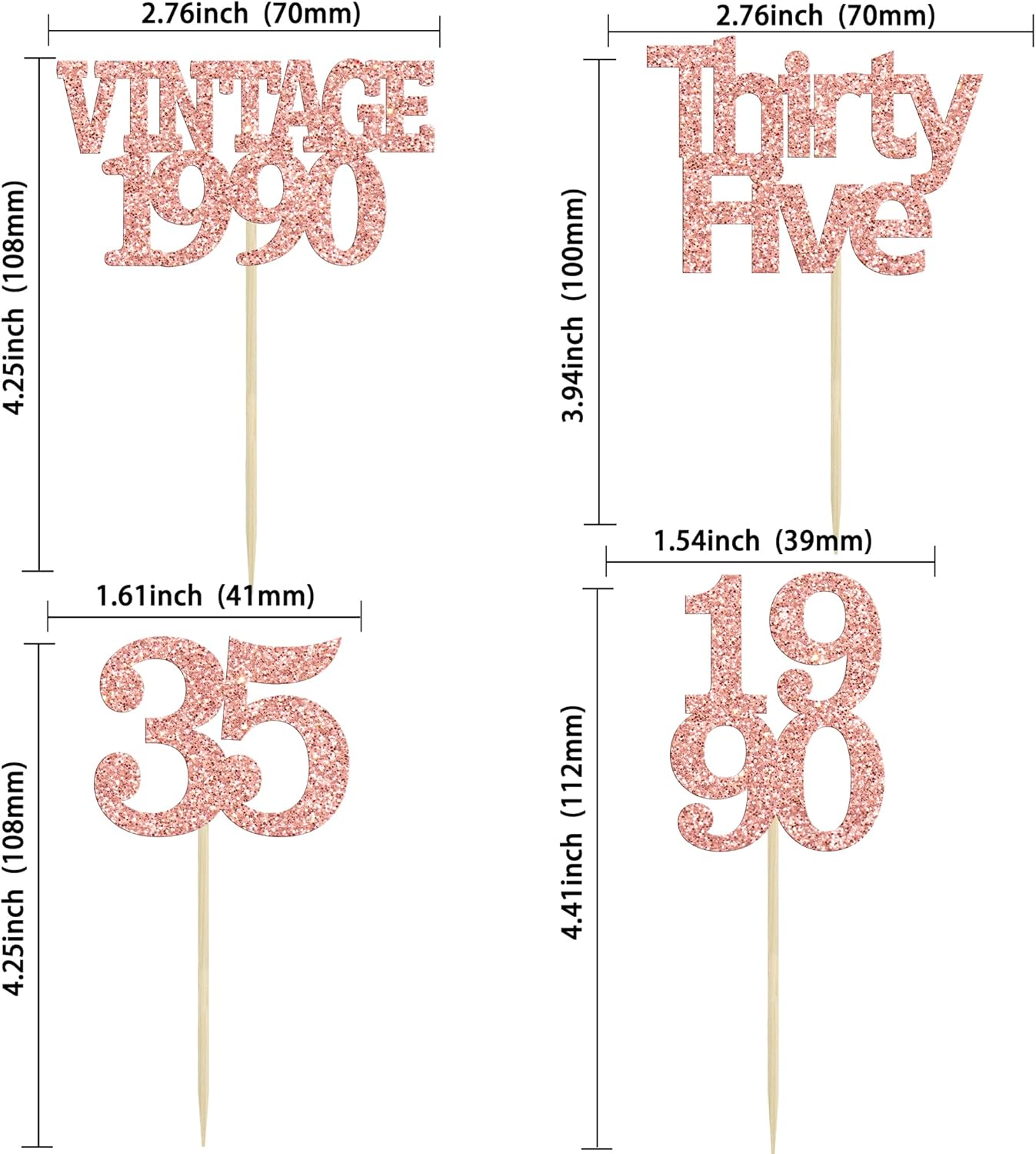 Gyufise 24Pcs Happy 35th Birthday Cupcake Toppers Glitter Thirty Five 35 Fabulous Vintage 1990 Cupcake Picks for 30th Birthday Wedding Anniversary Party Cake Decorations Supplies Rose Gold