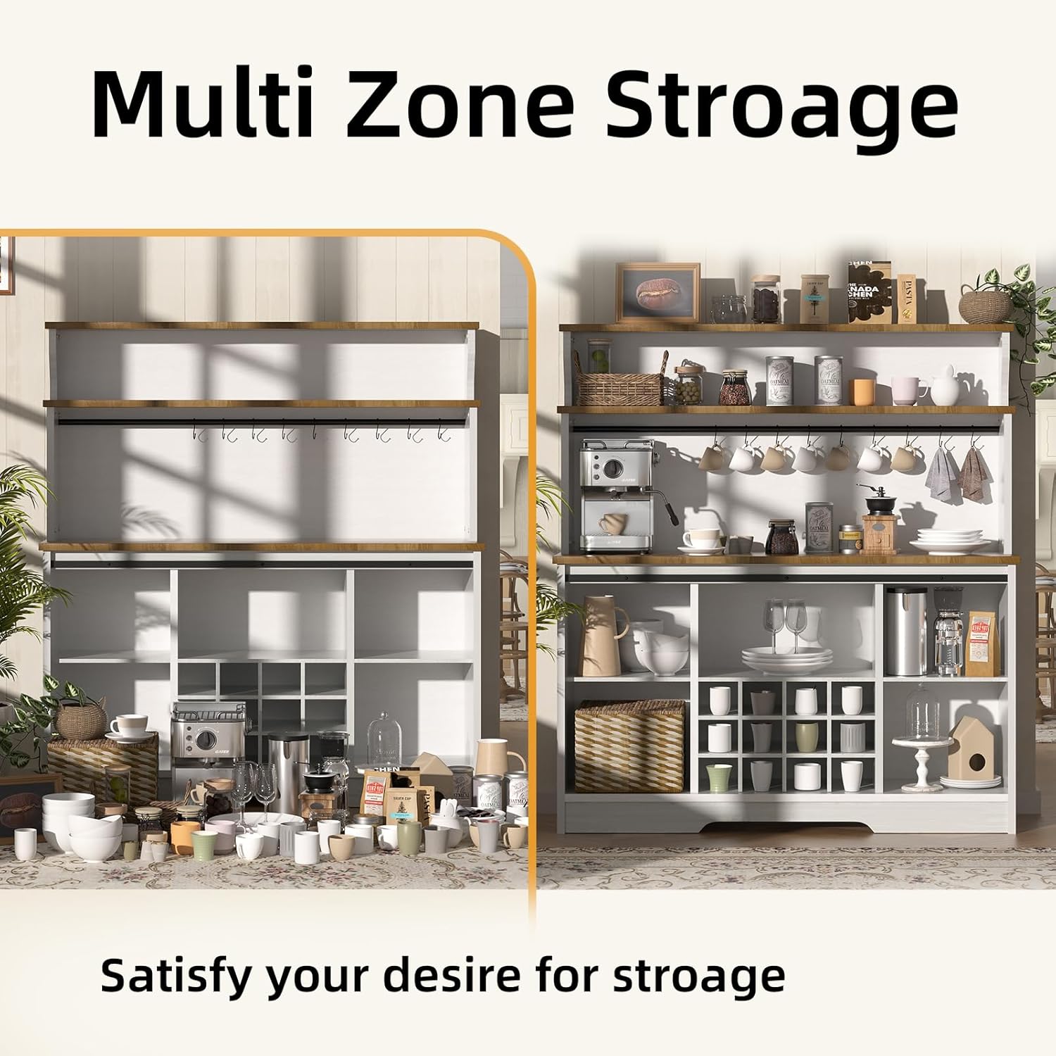 - [Multifunctional Use]: This coffee station allows you to stylishly display and store your coffee mugs and stemware. It also can serve as a wine bar cabinet, coffee bar, home bar, sideboard, TV bar, and more. It is an ideal coffee bar for kitchen, living room, dining room and office.