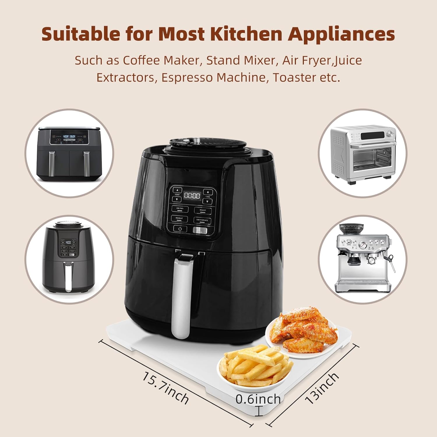 - SIZE OPTIONS: 【12.8"×15.8"】coffee maker slider tray for counter best for deeper depth double coffee makers or air fryers. Coffee maker trays for countertop suitable for Breville, Keurig K-Mini, Ninja,small coffee makers, espresso machines, air fryers, toasters and stand mixers.