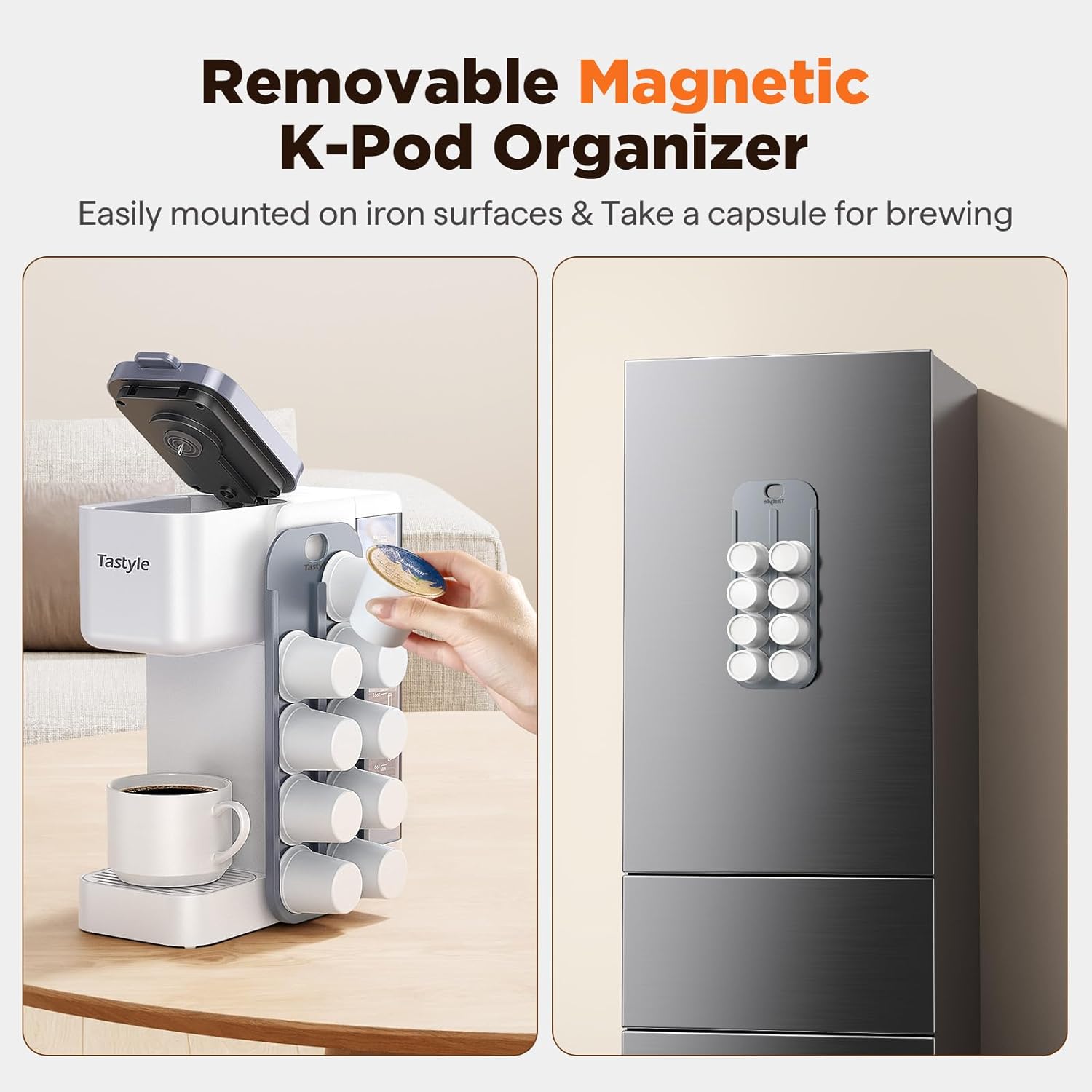 - Innovative Magnetic K-Pod Organizer Included: Easily mounted on the coffee machine's side for organized pods storage, saving counter space, and easily taking a pod for brewing (Pods Not Included)