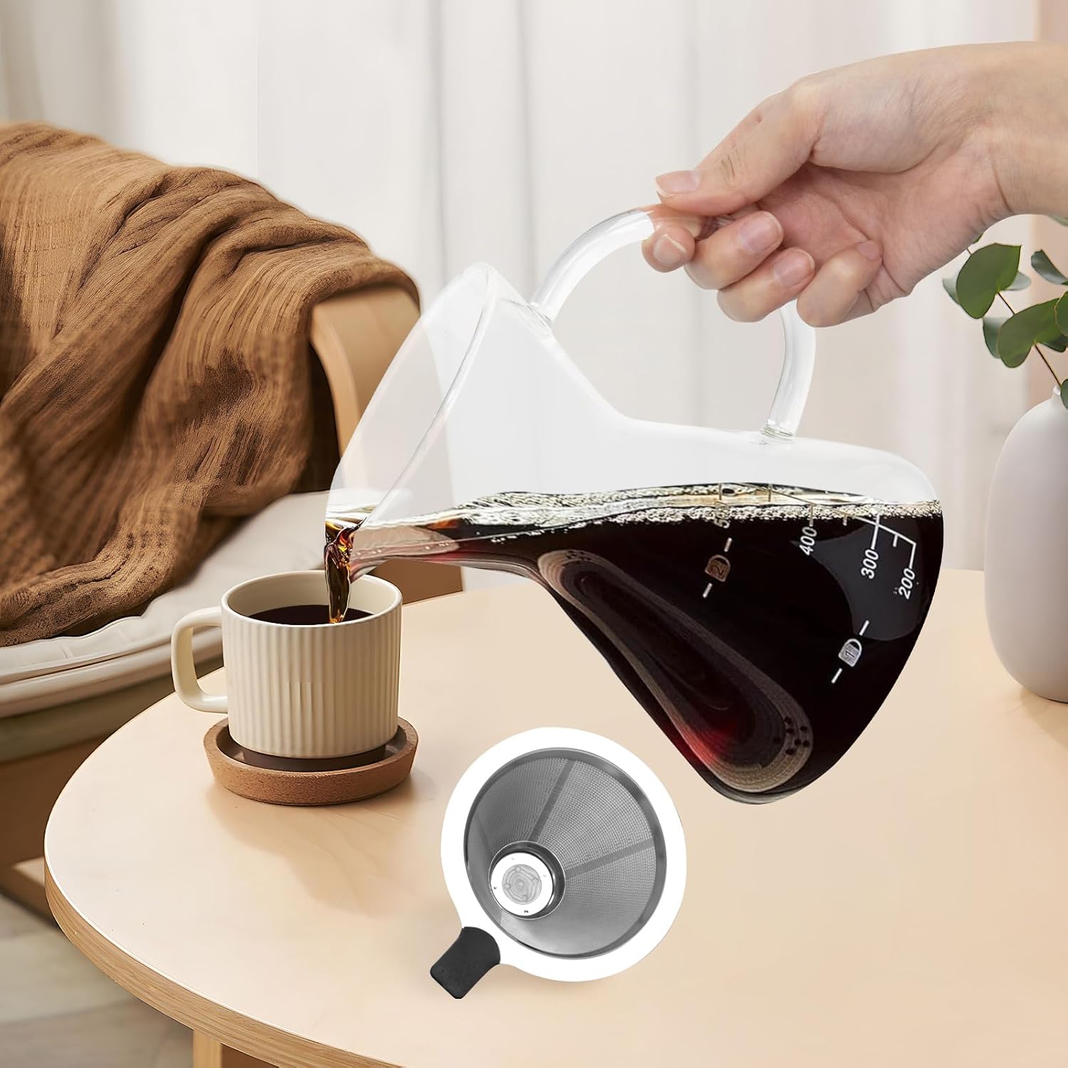 - Clear Graduated Markings for Precision Brewing: Glass coffee dripper with clear graduated brewing 4 cups of coffee at a time (4 ounces per cup) Achieve consistent flavor and quality in every cup of coffee with our precision-focused pour over coffee maker.